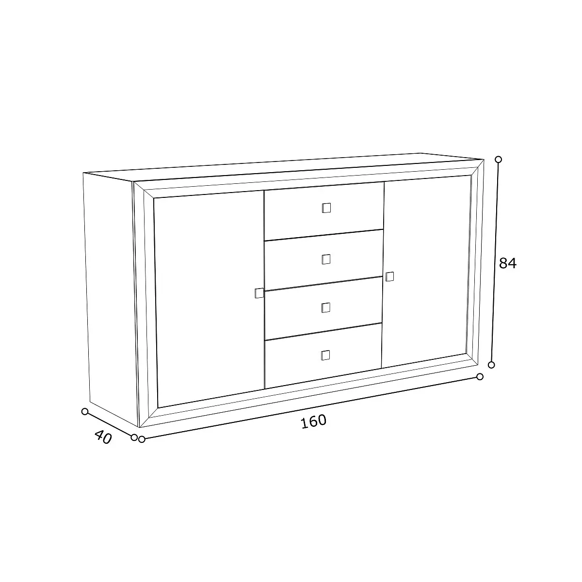 El Aparador Blanco Mod.PRAGA ofrece un almacenamiento eficiente con dos puertas y cuatro cajones. Las puertas laterales ocultan estantes espaciosos, perfectos para guardar objetos más grandes. Los cajones centrales son ideales para artículos más pequeños, como utensilios de cocina o ropa de mesa. Este mueble es la elección perfecta para aquellos que buscan maximizar el uso del espacio sin sacrificar el estilo.