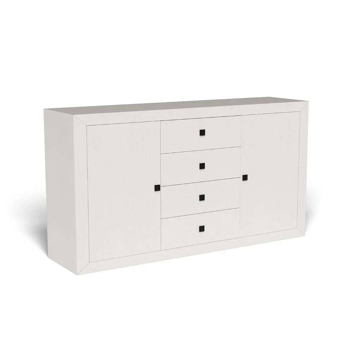El Aparador Blanco Mod.PRAGA ofrece un almacenamiento eficiente con dos puertas y cuatro cajones. Las puertas laterales ocultan estantes espaciosos, perfectos para guardar objetos más grandes. Los cajones centrales son ideales para artículos más pequeños, como utensilios de cocina o ropa de mesa. Este mueble es la elección perfecta para aquellos que buscan maximizar el uso del espacio sin sacrificar el estilo.