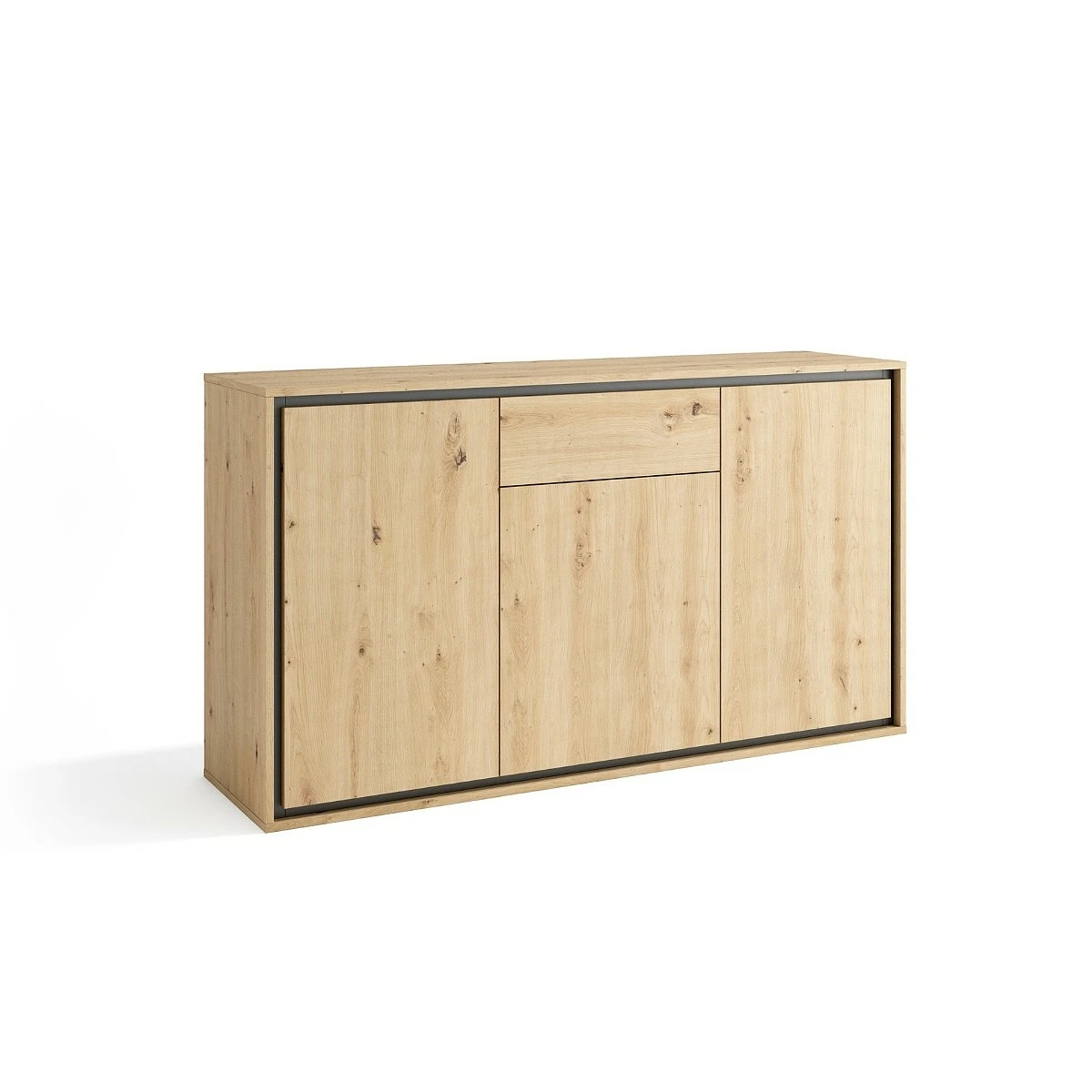 El aparador está equipado con tres amplias puertas y un cajón superior, ideales para mantener tus objetos organizados y fuera de la vista. La apertura tipo “push” elimina la necesidad de tiradores, manteniendo una estética limpia y moderna.
