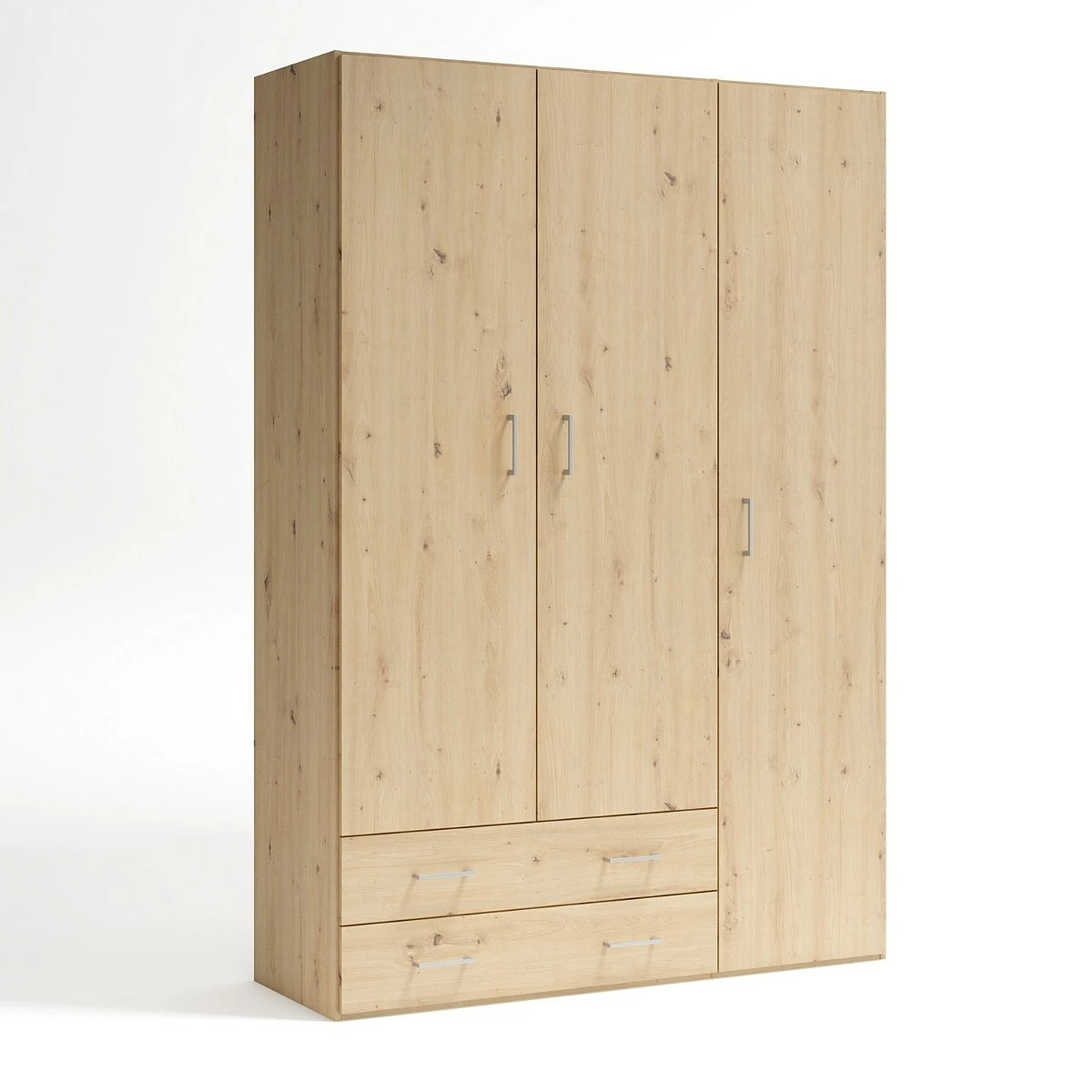 Este armario ha sido diseñado para ofrecer una distribución interior muy completa. Las barras para colgar te permiten tener camisas, chaquetas y vestidos siempre organizados, mientras que el módulo lateral con estantes es perfecto para ropa doblada, bolsos o cajas. Los cajones inferiores ofrecen espacio adicional para prendas íntimas, ropa de hogar o accesorios.