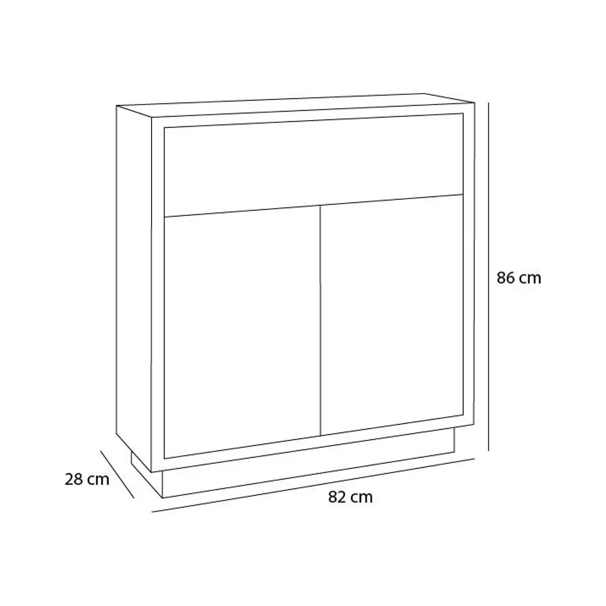 Gracias a su tamaño de 82x86x28 cm, es perfecto para espacios reducidos, aportando soluciones prácticas de almacenaje sin saturar la estancia.