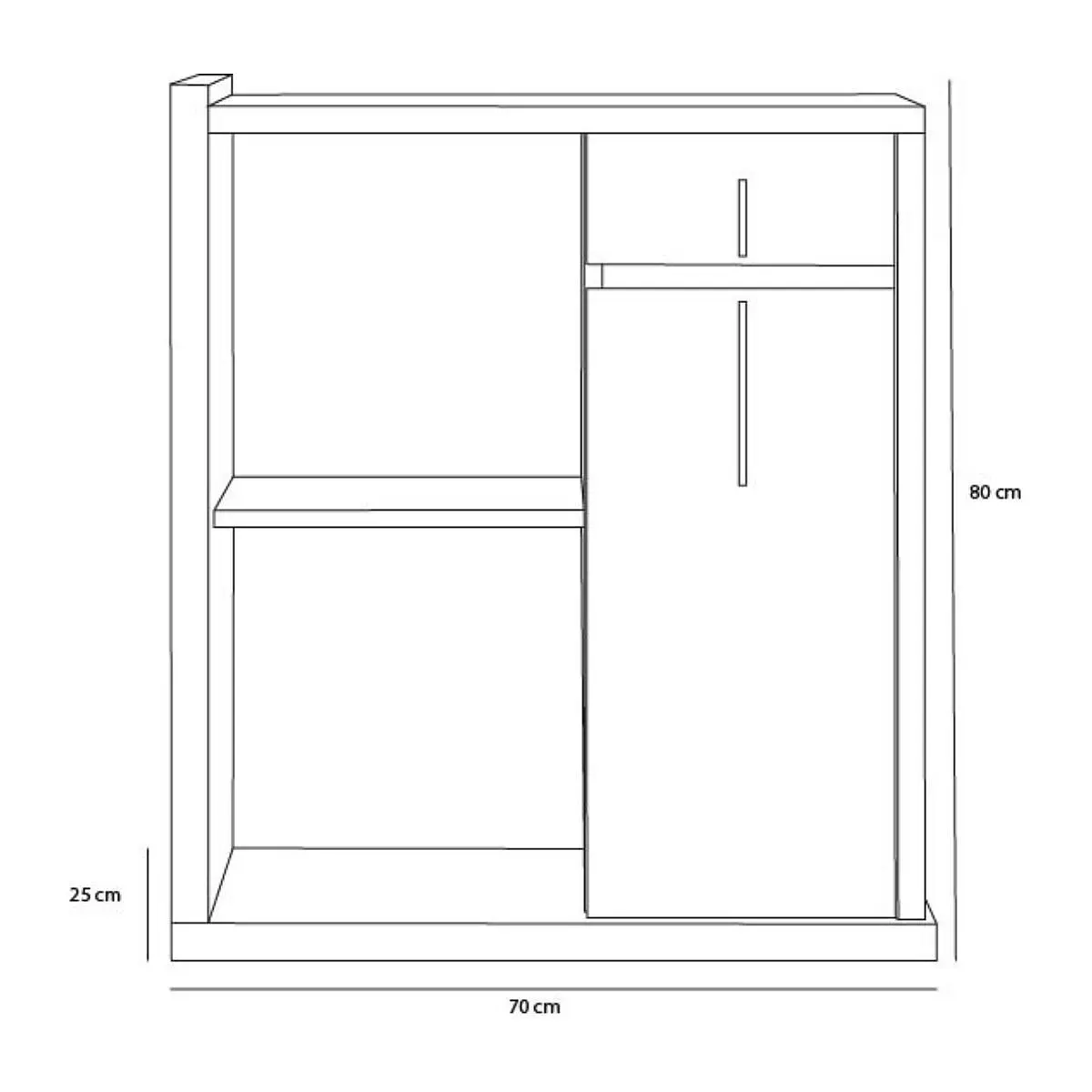 • Medidas: 70 cm ancho x 80 cm alto x 25 cm fondo