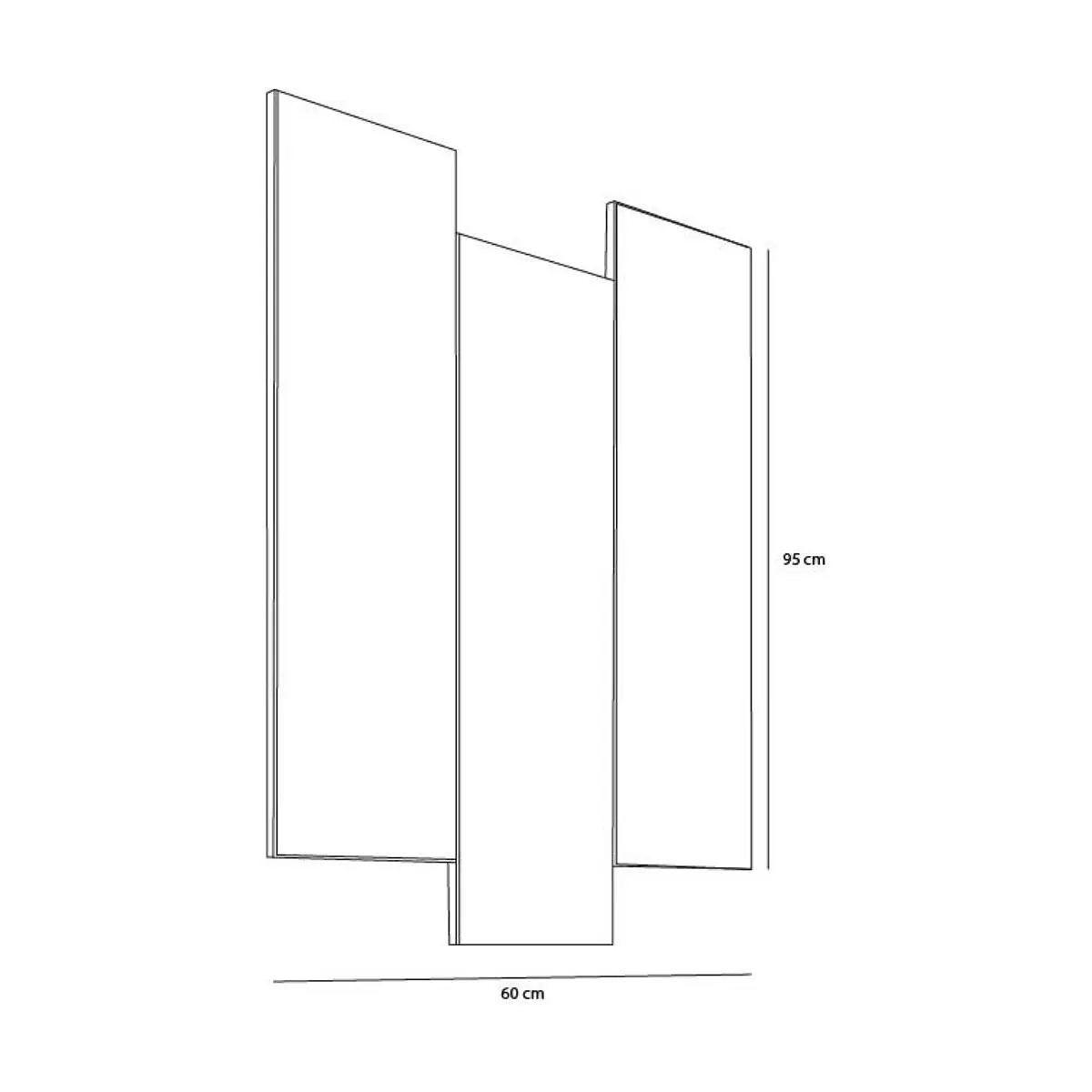 La composición de este espejo en tres paneles desiguales le da un efecto visual elegante y contemporáneo. El fondo en madera añade calidez, mientras que los espejos reflejan la luz y amplían el espacio. Este diseño es ideal para combinar con recibidores modernos, creando una composición armónica sin sobrecargar visualmente el ambiente.