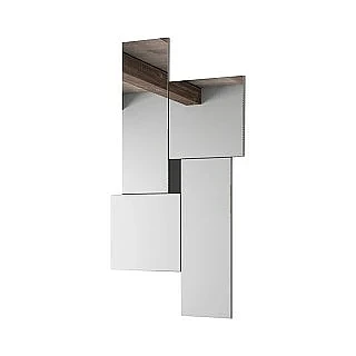 Este modelo transforma un simple espejo en una pieza decorativa con presencia, gracias a su composición asimétrica y geométrica. Sus formas cuadradas y rectangulares aportan dinamismo visual, sin perder la funcionalidad de un espejo tradicional.