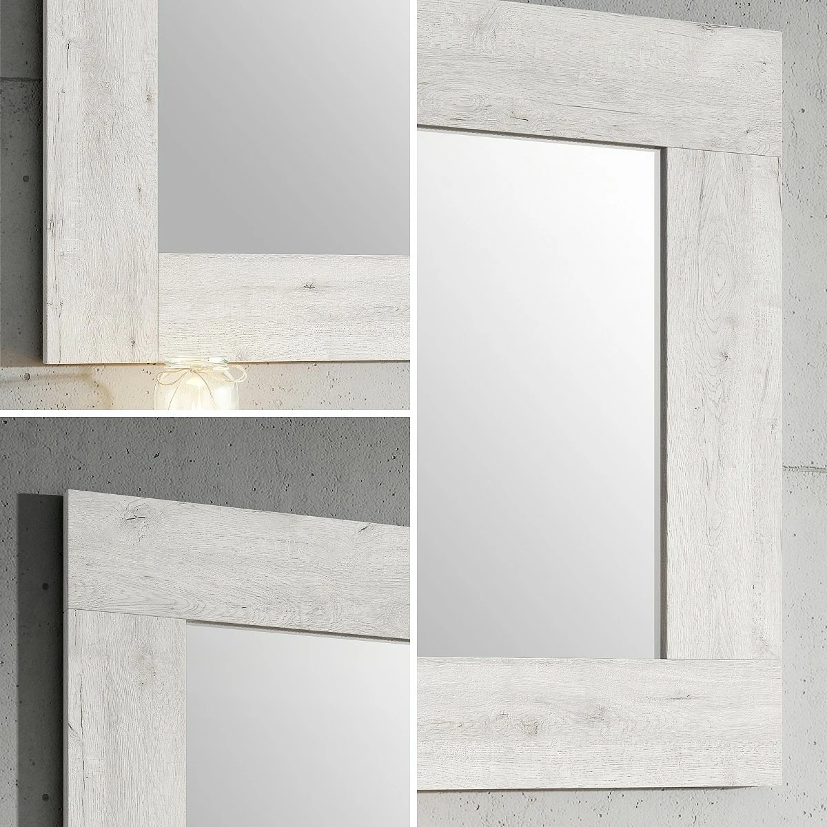 El espejo incluye herrajes para su colocación en pared, garantizando una instalación segura. Está fabricado en melamina de alta calidad, con acabados resistentes al uso diario y fáciles de limpiar. Un paño suave y húmedo es suficiente para mantener el marco impecable.