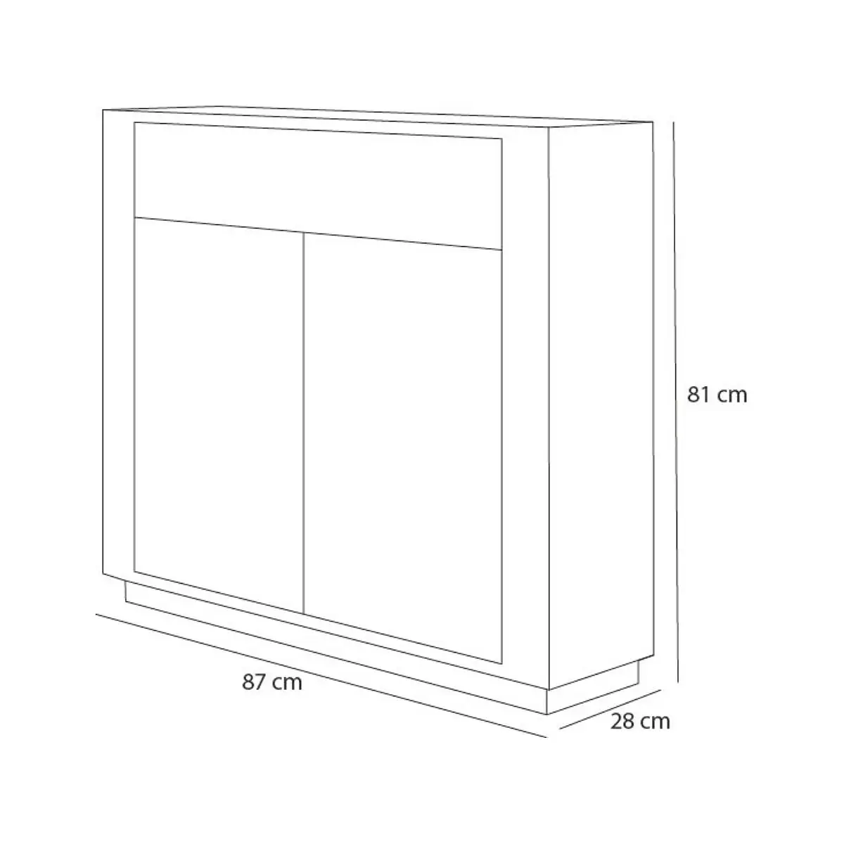 Sus medidas de 87x81x28 cm son ideales para lugares reducidos, permitiendo optimizar el espacio sin sacrificar la capacidad de almacenamiento.