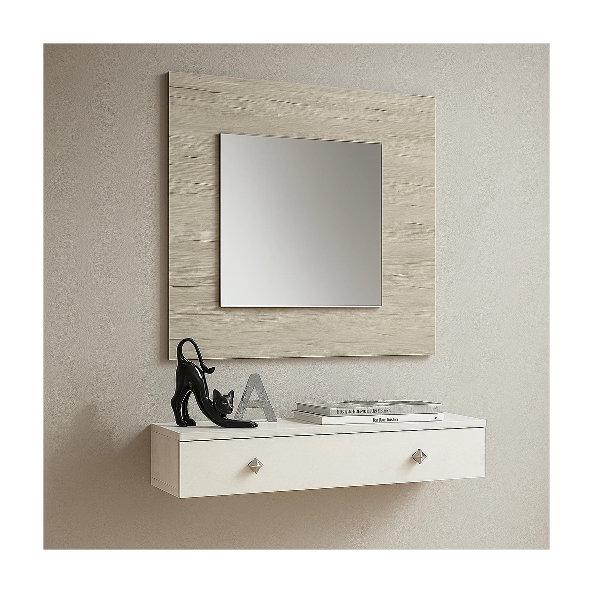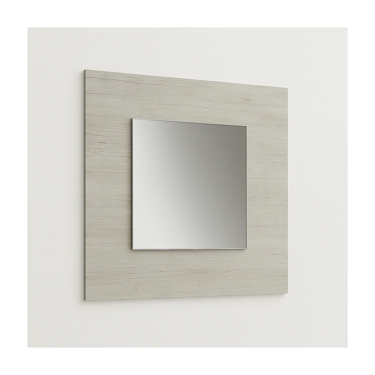 Este espejo tibet 80x80cm no solo cumple su función práctica, sino que se convierte en un elemento decorativo indispensable. Su diseño con marco ancho en efecto madera clara aporta calidez, mientras que el espejo central refleja la luz natural, haciendo que cualquier espacio parezca más amplio y luminoso.