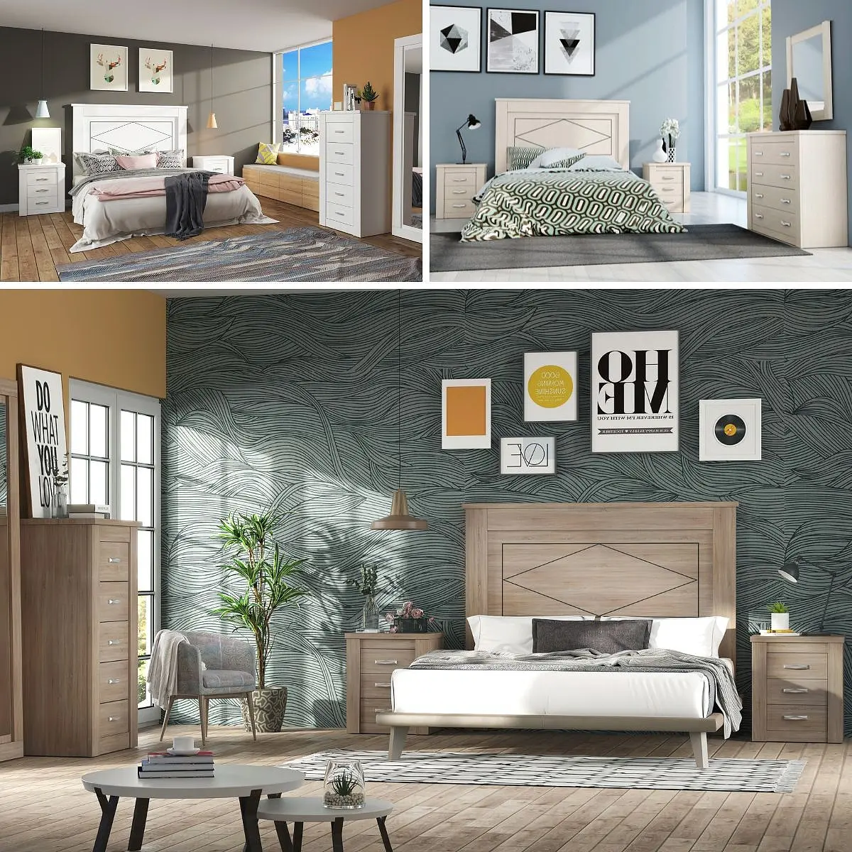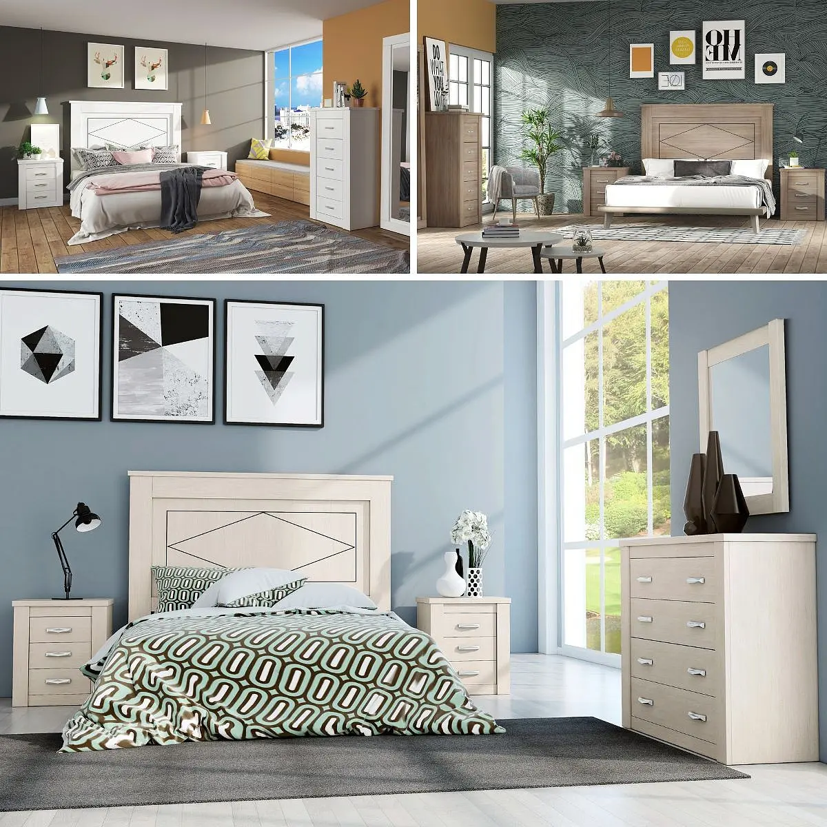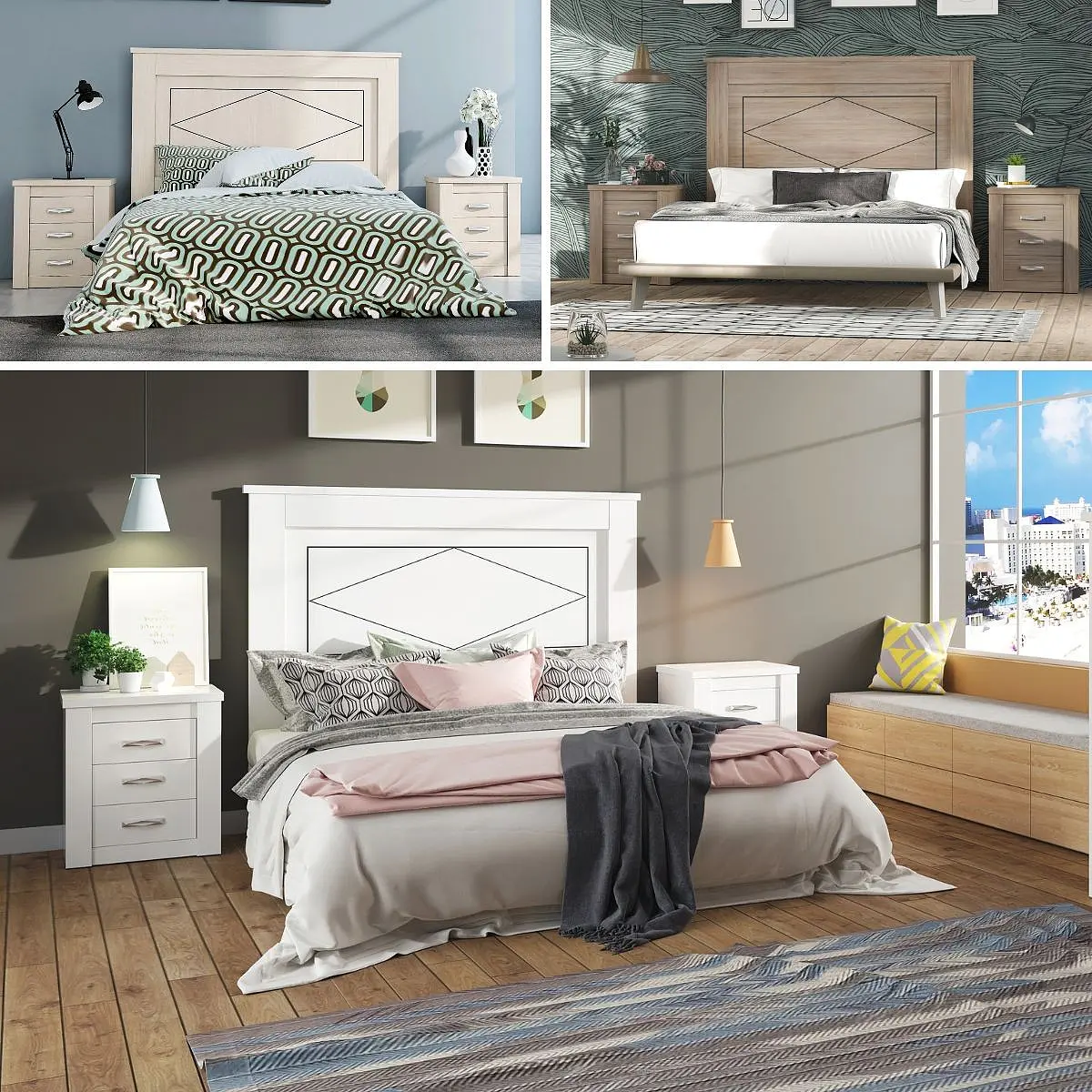 Conjunto dormitorio Dakota con cabecero, 2 mesitas, comoda y espejo Conjunto dormitorio Dakota con cabecero, 2 mesitas, comoda y espejo Conjunto dormitorio Dakota con cabecero, 2 mesitas, comoda y espejo
