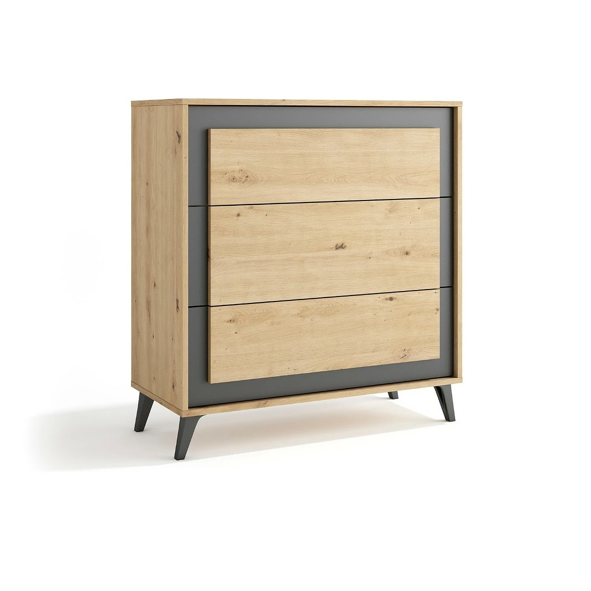 La versatilidad es uno de los puntos fuertes de este conjunto. Puedes elegir mesitas y cómoda con o sin patas, según el estilo decorativo que quieras conseguir. Las versiones sin patas aportan una estética más compacta y minimalista, mientras que las opciones con patas estilizan el conjunto y facilitan la limpieza del suelo. Una solución pensada para diferentes tipos de dormitorio, desde los más amplios hasta los más reducidos.