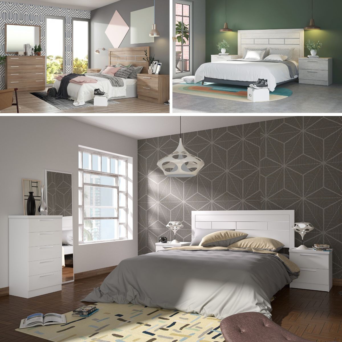 Dormitorio completo Lisboa con cabecero, 2 mesitas, sinfonier y espejo Dormitorio completo Lisboa con cabecero, 2 mesitas, sinfonier y espejo Dormitorio completo Lisboa con cabecero, 2 mesitas, sinfonier y espejo