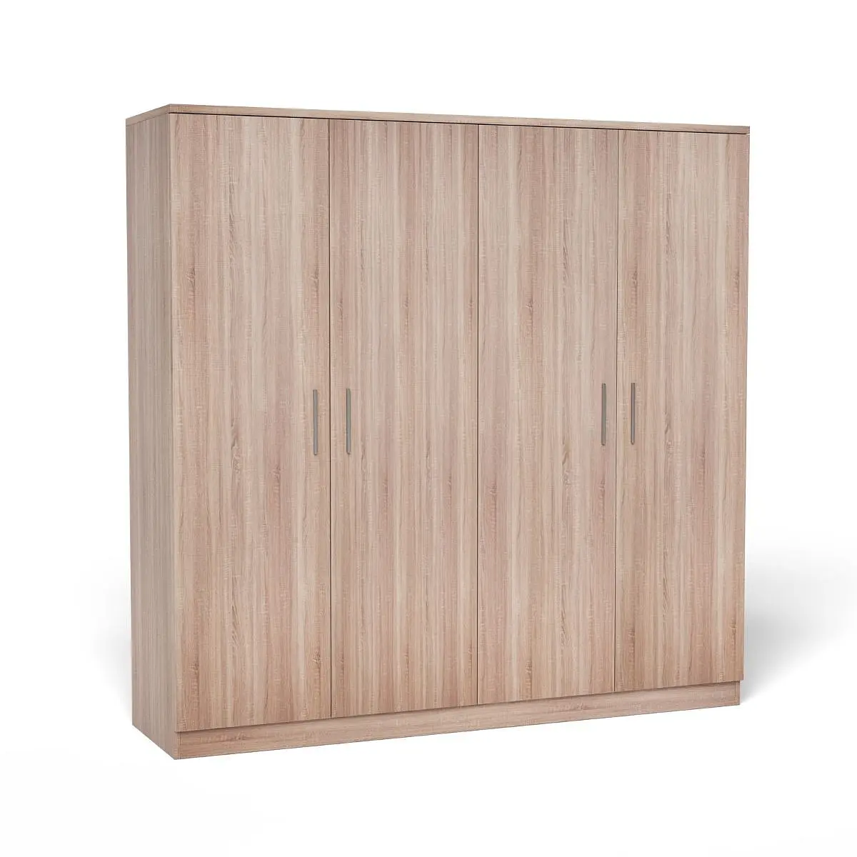 El armario viene equipado con cuatro puertas abatibles, cada una con herrajes metálicos robustos y guías de alta calidad, asegurando un movimiento suave y silencioso al abrir y cerrar. Esta característica no solo aporta una sensación de lujo sino que también promete una funcionalidad sin problemas en el día a día.