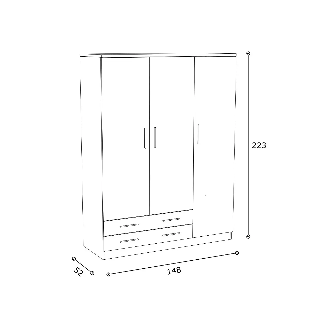 Armario 3 puertas Mod. DAKOTA. 223 x 148 x 52 cm.