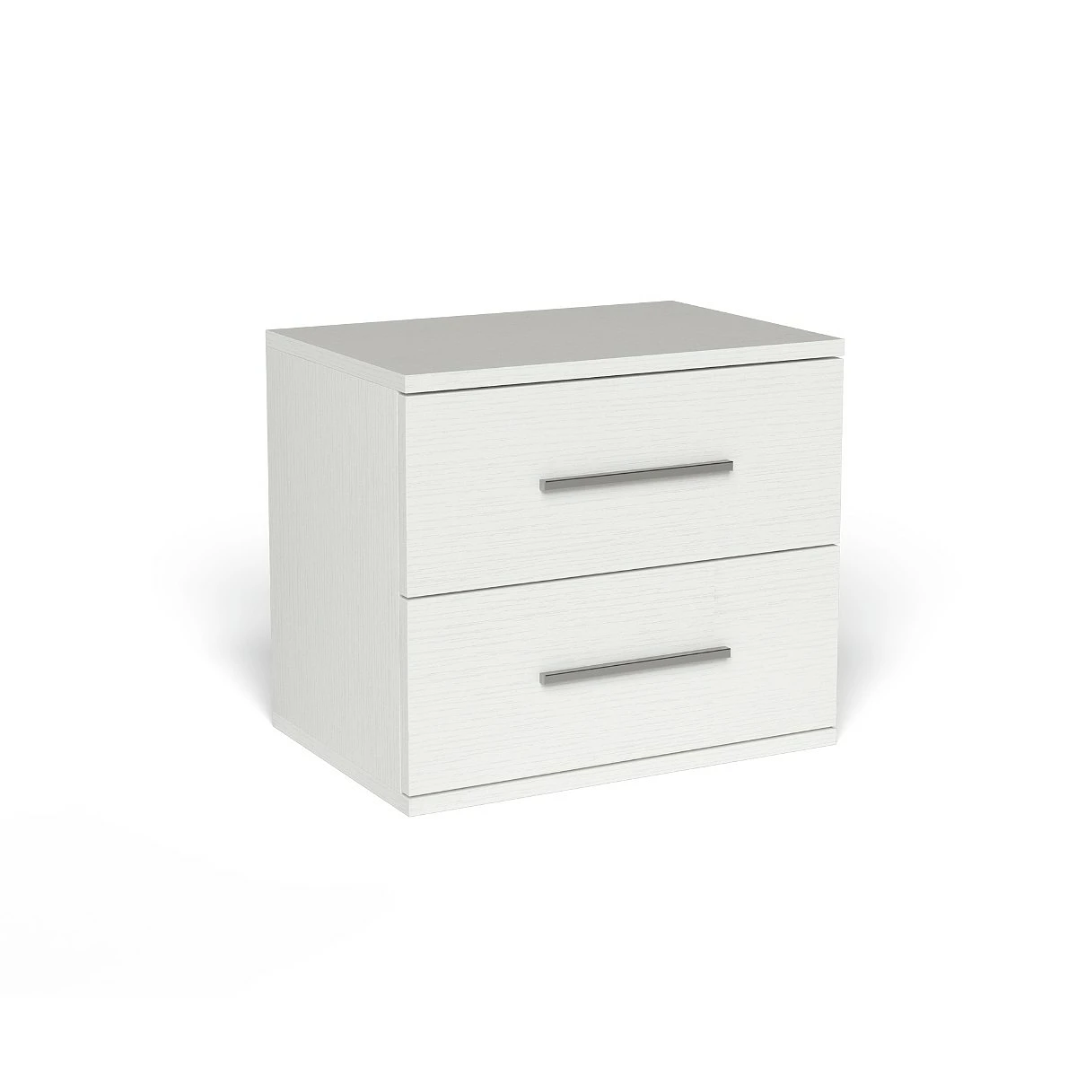 • 2 Mesitas de noche: Cada una con 2 cajones. Medidas 50 x 36 x 45 cm. Acabados disponibles: Cambrian Blanco, Blanco, Tibet, Tibet Pizarra, Cambrian.