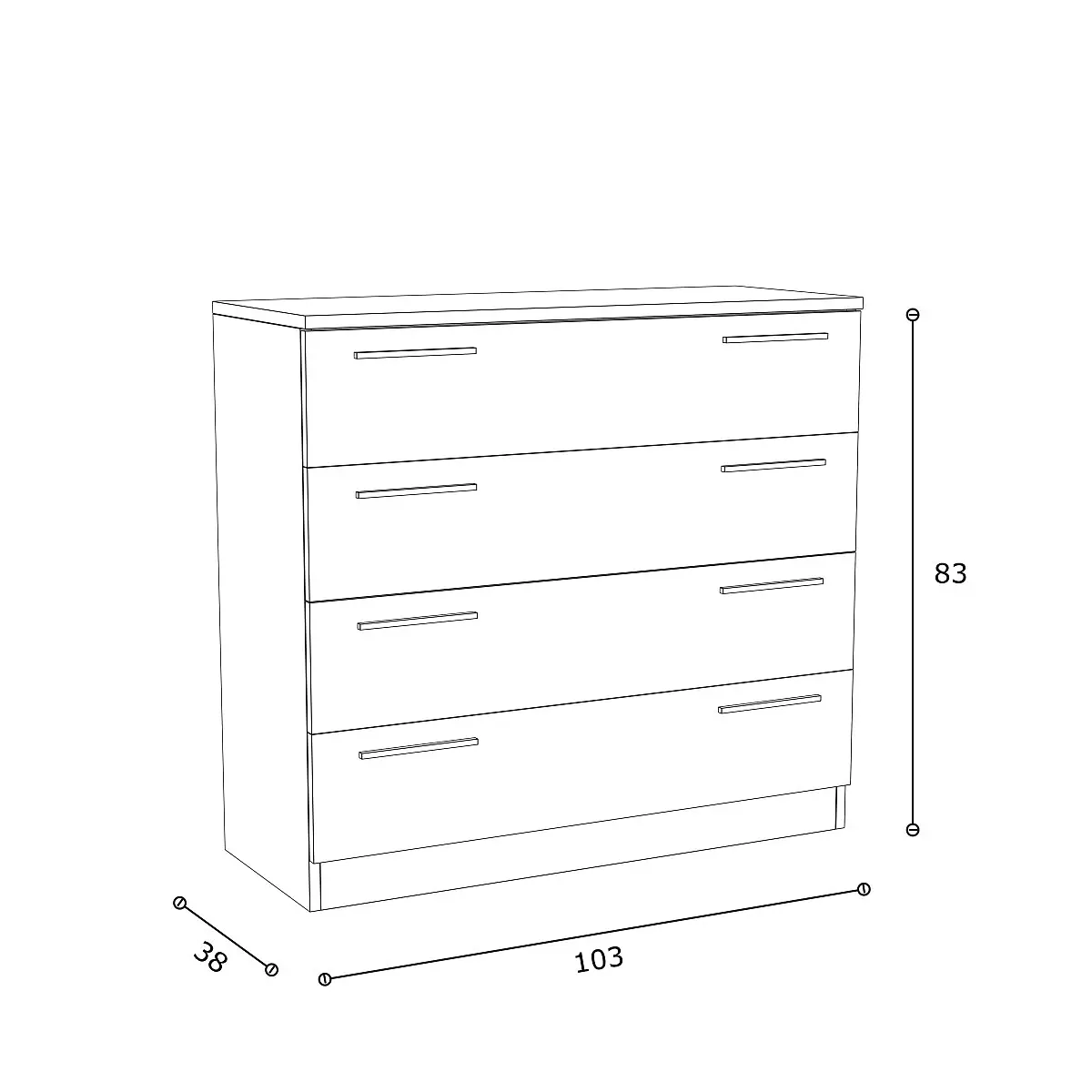 Comoda modelo Grecia de 4 cajones, Medidas 93 x 83 x 40 cm. Disponible en varios colores.