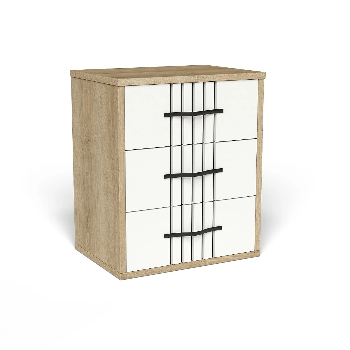 • Cajones: 3 amplios cajones con tiradores verticales centrales