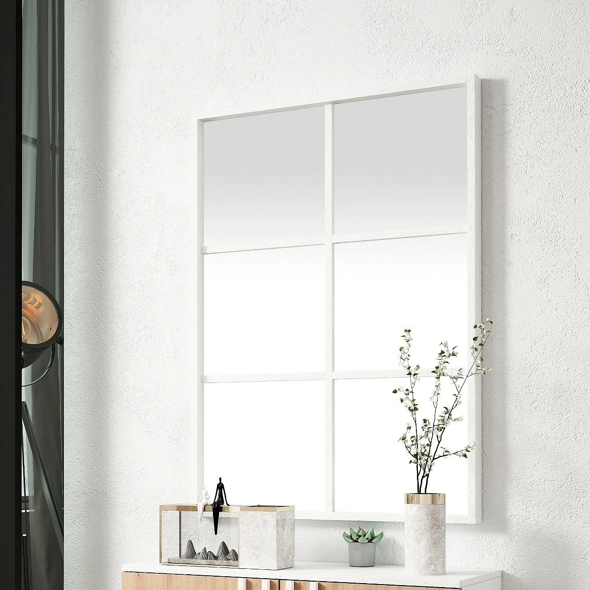 Este espejo de pared no solo cumple una función práctica, sino que también se convierte en un elemento decorativo indispensable. Gracias a su diseño sobrio con cuadrícula, aporta un aire contemporáneo que combina perfectamente con muebles claros, maderas naturales o incluso paredes oscuras que buscan contraste. En tonos blanco y negro, puedes seleccionar la versión que mejor armonice con tu decoración actual.