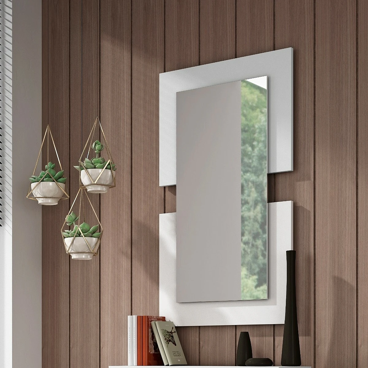 El Espejo Blanco 110x64 cm se caracteriza por su diseño único que combina paneles superpuestos para crear un efecto visual impactante. El acabado en blanco neutro realza la sensación de luminosidad, integrándose fácilmente en cualquier estilo decorativo, desde minimalista hasta contemporáneo.