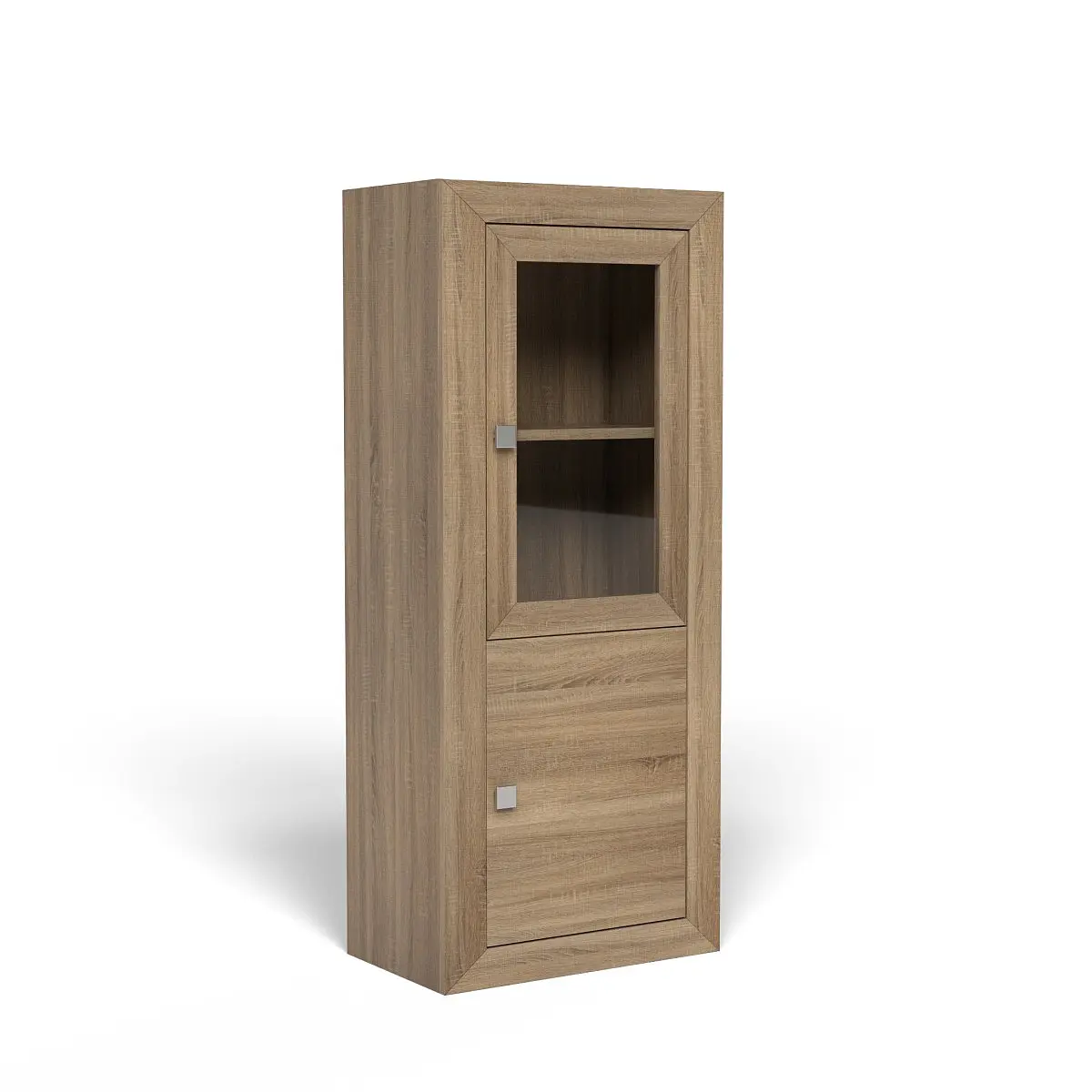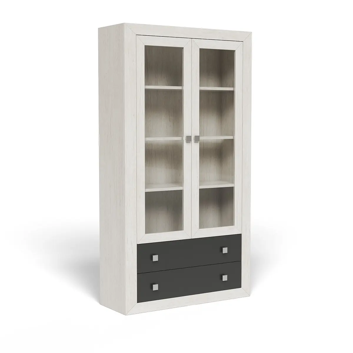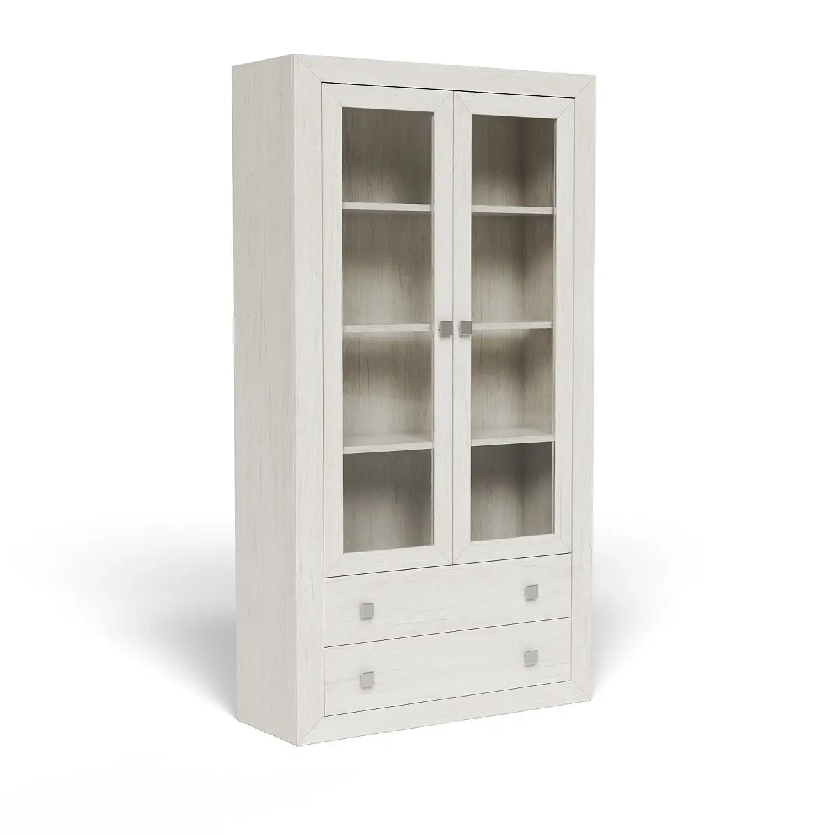 El conjunto está diseñado para cubrir las necesidades cotidianas del hogar. La vitrina con puertas acristaladas permite mostrar objetos delicados sin que acumulen polvo. El bodeguero ofrece almacenamiento cerrado perfecto para documentación, vajilla o textiles. El mueble bajo TV incorpora cajones y huecos abiertos, perfectos para multimedia y mandos.