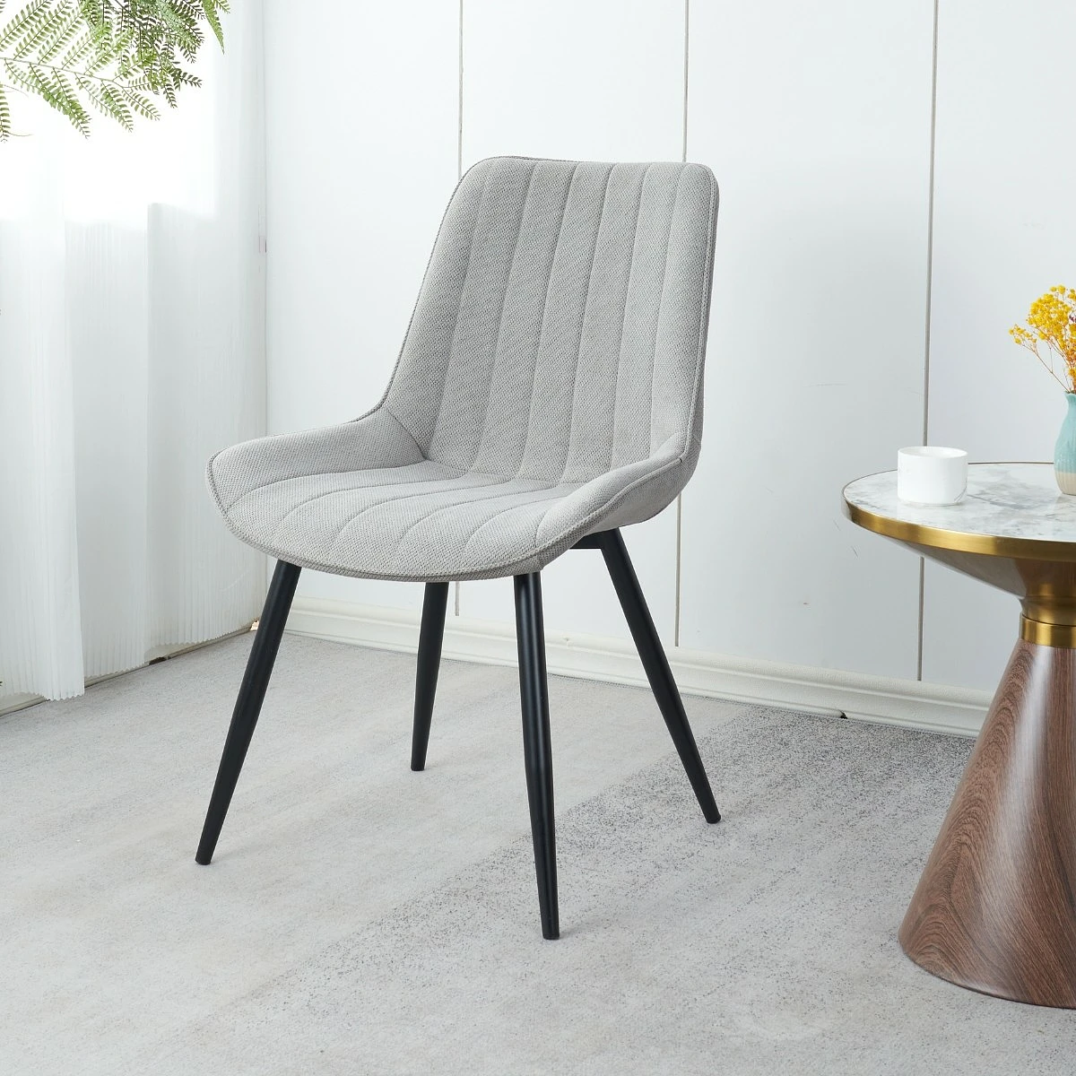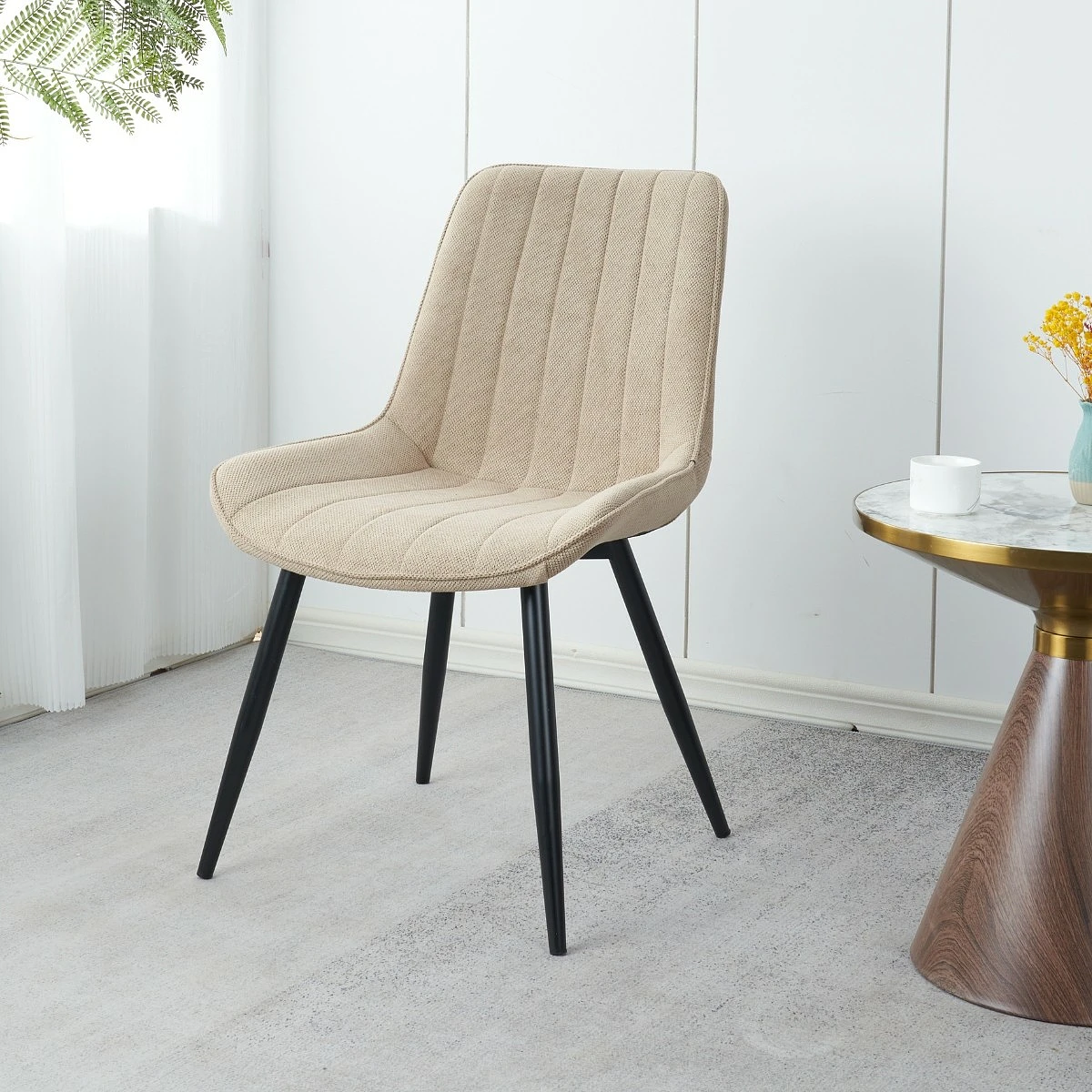 Las sillas Brisa presentan un respaldo alto con acolchado vertical, diseñado para brindar un soporte cómodo en la zona lumbar. Su asiento amplio permite una postura relajada y estable, ideal tanto para comidas cotidianas como para reuniones prolongadas con invitados.