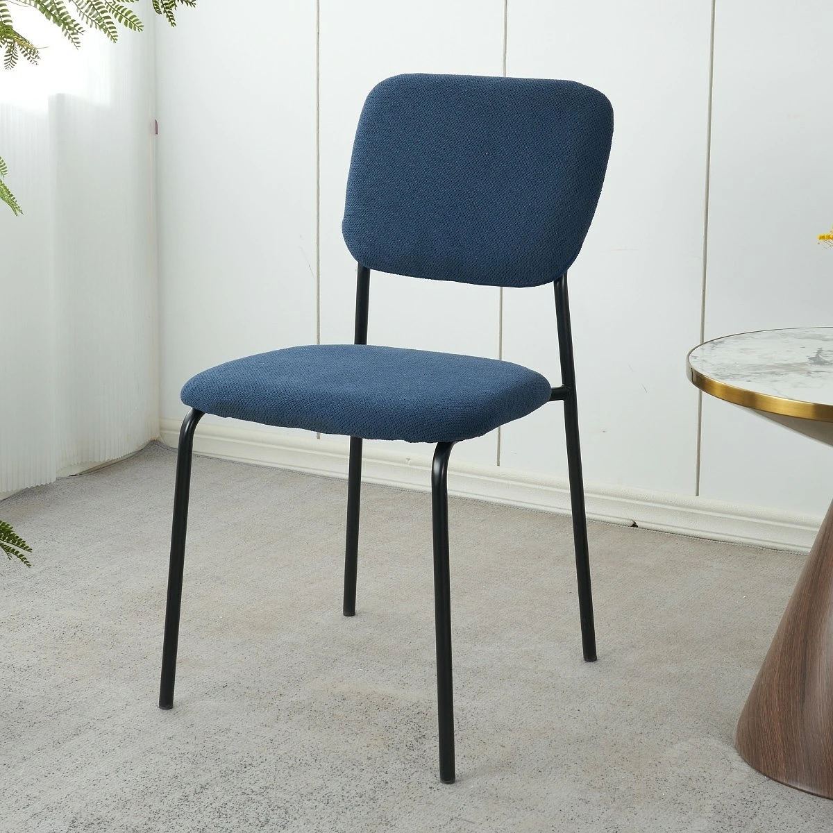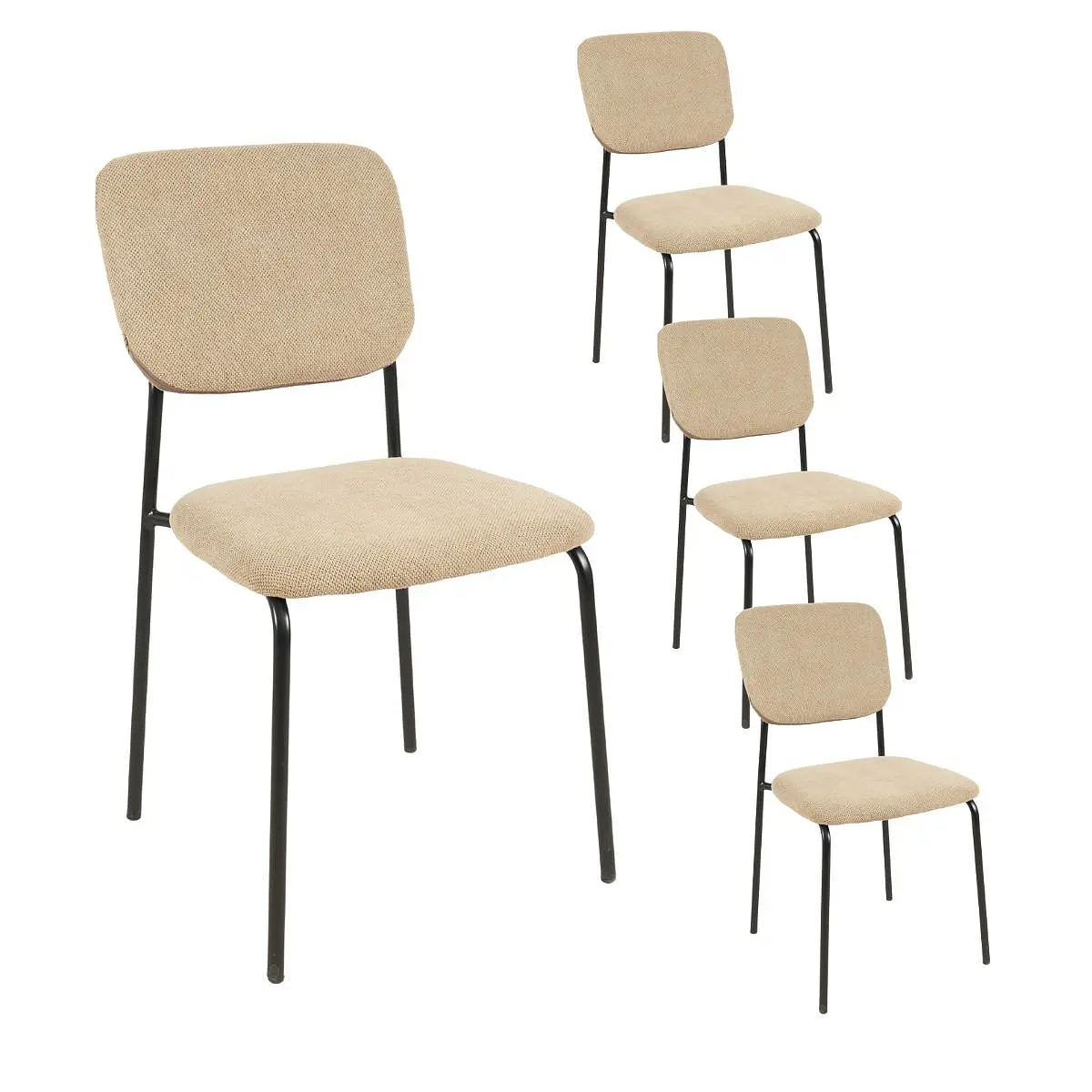 El acabado mate de las patas metálicas negras aporta un contraste moderno y definido que enriquece visualmente la silla sin restarle suavidad. Ya sea alrededor de una mesa de madera clara o en contraste con elementos oscuros, las Melisa elevan la estética general con sencillez y buen gusto.