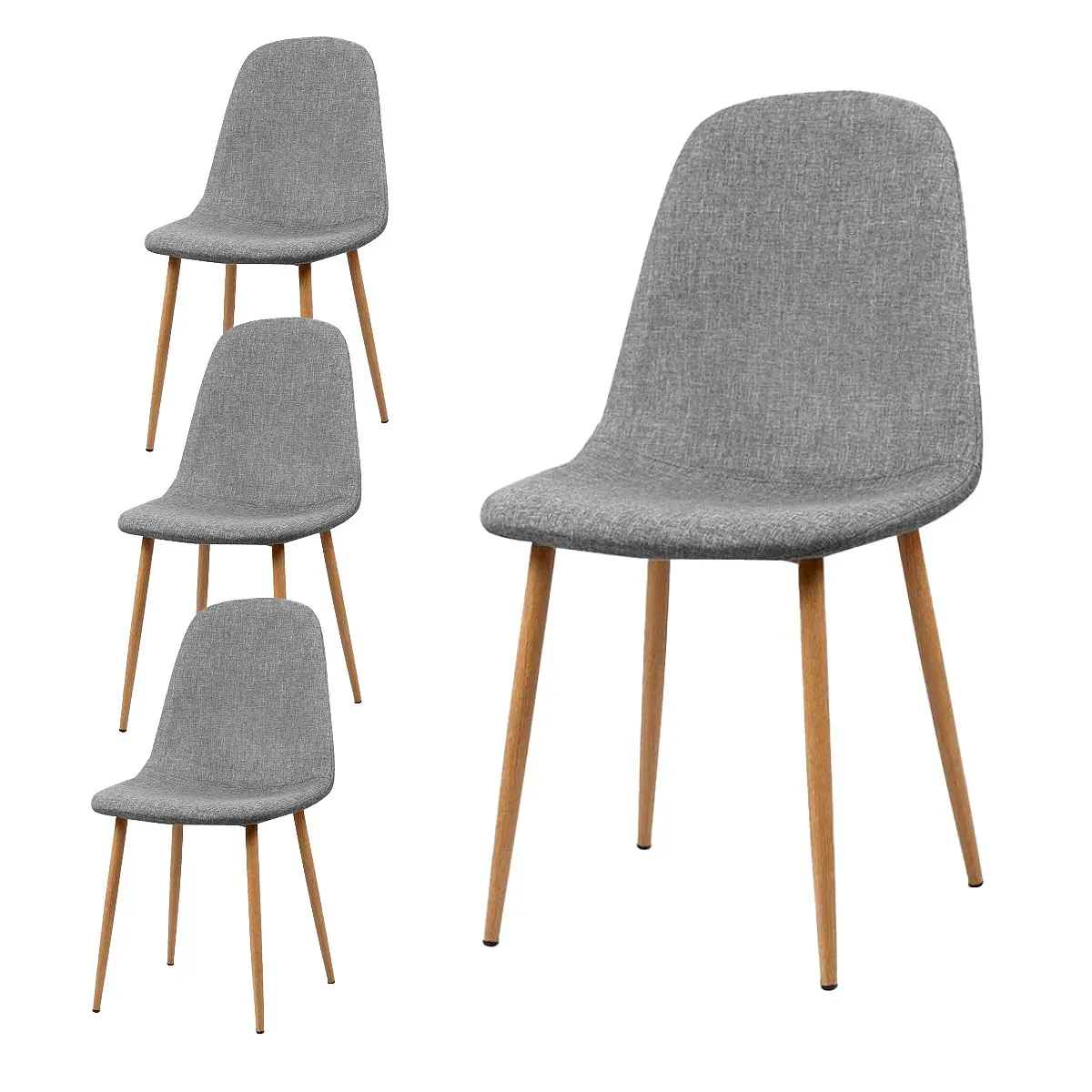 Estas sillas presentan unas dimensiones compactas y bien proporcionadas, pensadas para brindar confort sin ocupar demasiado espacio. El asiento, a 48 cm del suelo, se adapta perfectamente a la altura de mesas estándar. El respaldo curvado de 40 cm proporciona un buen apoyo lumbar, ideal para pasar tiempo en la mesa sin molestias. La tapicería gris es agradable al tacto y fácil de cuidar, perfecta para el uso cotidiano.