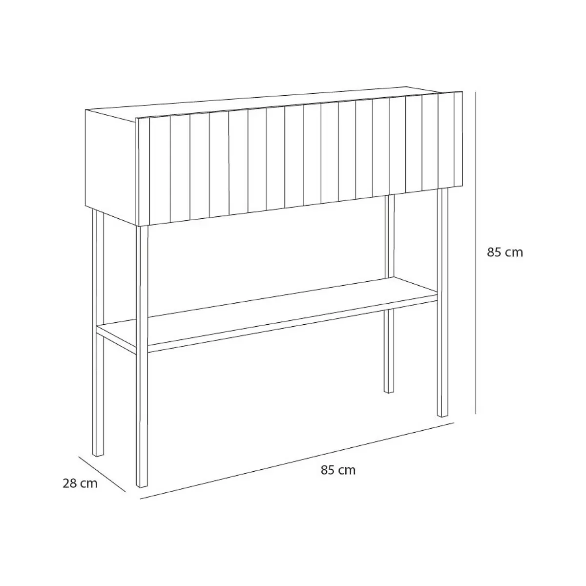• Medidas del mueble recibidor: 85 cm (ancho) x 28 cm (fondo) x 19 cm (alto)