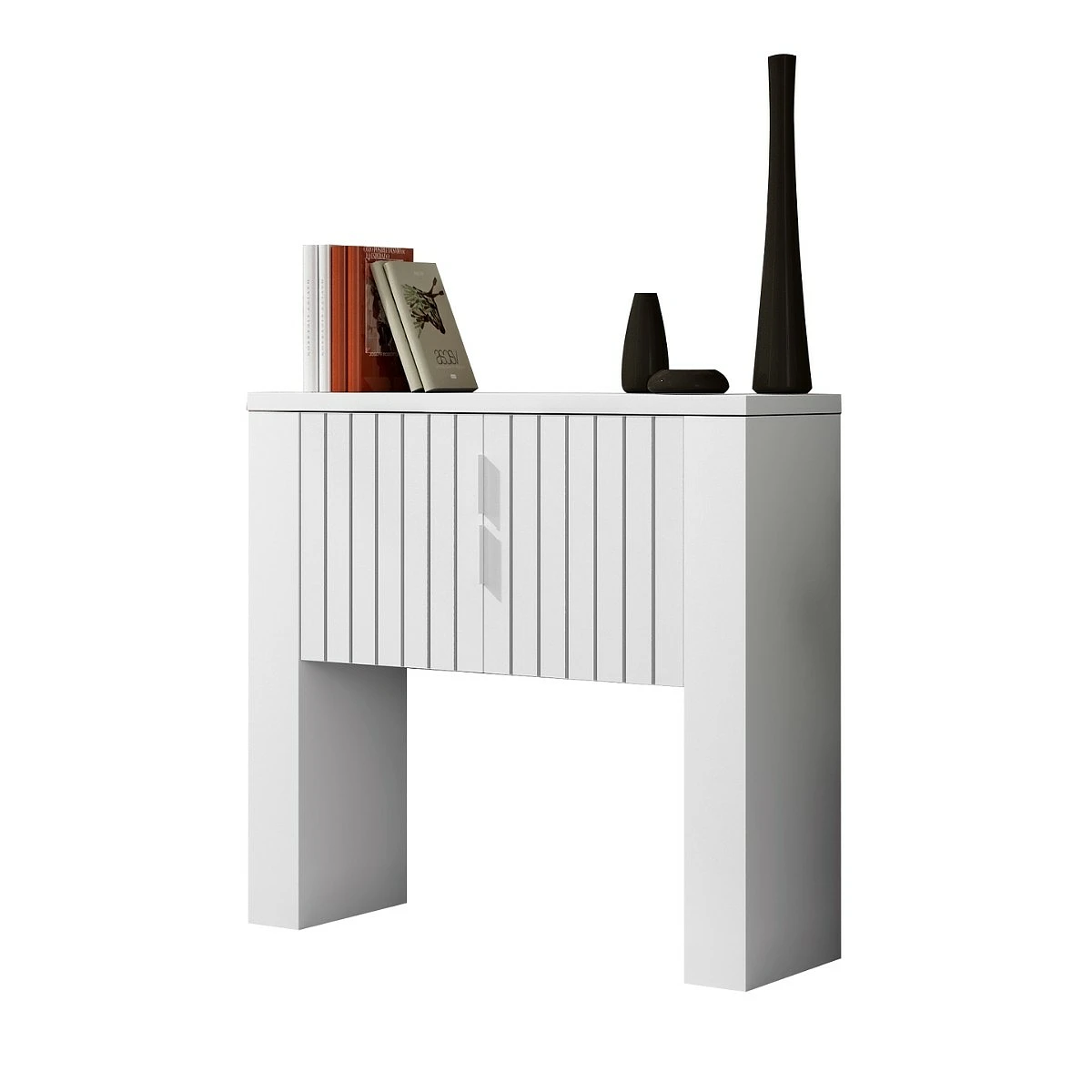 • Incluye: Consola blanca con puertas y espejo vertical decorativo.