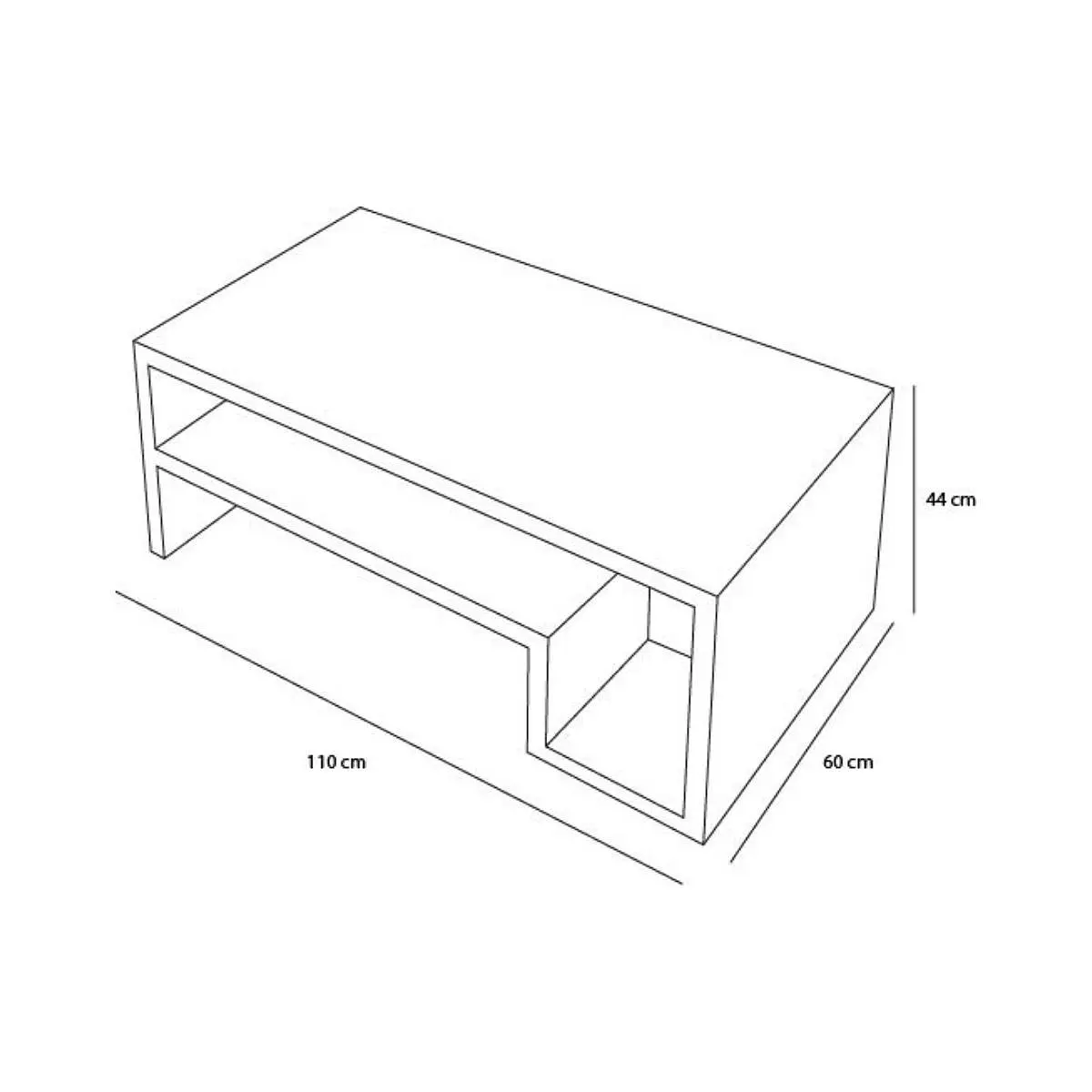 La parte inferior de la mesa incluye un estante abierto muy práctico para colocar revistas, portátiles, mandos o decoraciones sutiles. Además, en uno de sus laterales cuenta con un compartimento vertical ideal para organizar libros, tabletas o incluso bandejas decorativas.