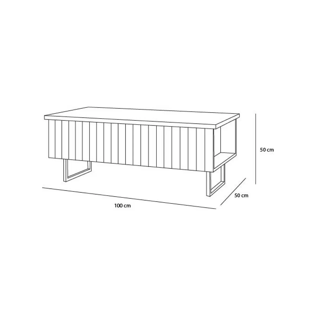 Esta mesa de centro elevable no solo embellece tu salón, sino que lo hace más práctico. Su tapa se eleva fácilmente, revelando un amplio compartimento oculto donde puedes guardar mandos, mantas o revistas. Esta funcionalidad es perfecta si trabajas ocasionalmente desde el sofá o si te gusta disfrutar de un aperitivo sin perder comodidad.