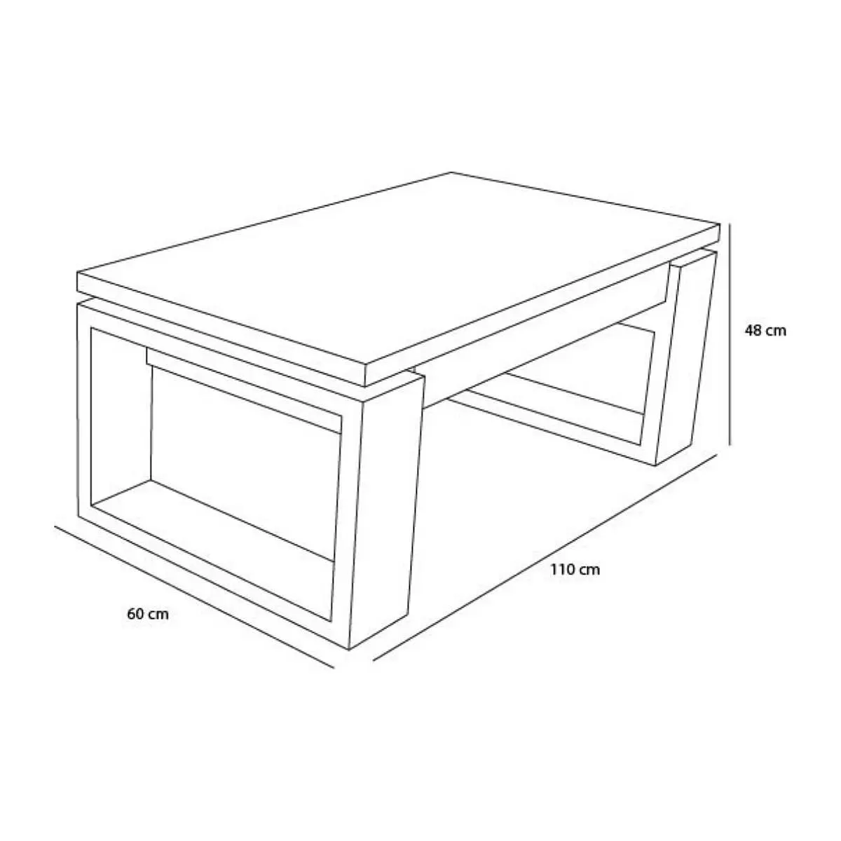 Dentro de la tapa elevable puedes guardar mandos, libros, revistas, auriculares, manteles o cualquier objeto de uso frecuente en el salón. Es un espacio funcional para mantener todo en orden sin perder acceso rápido.