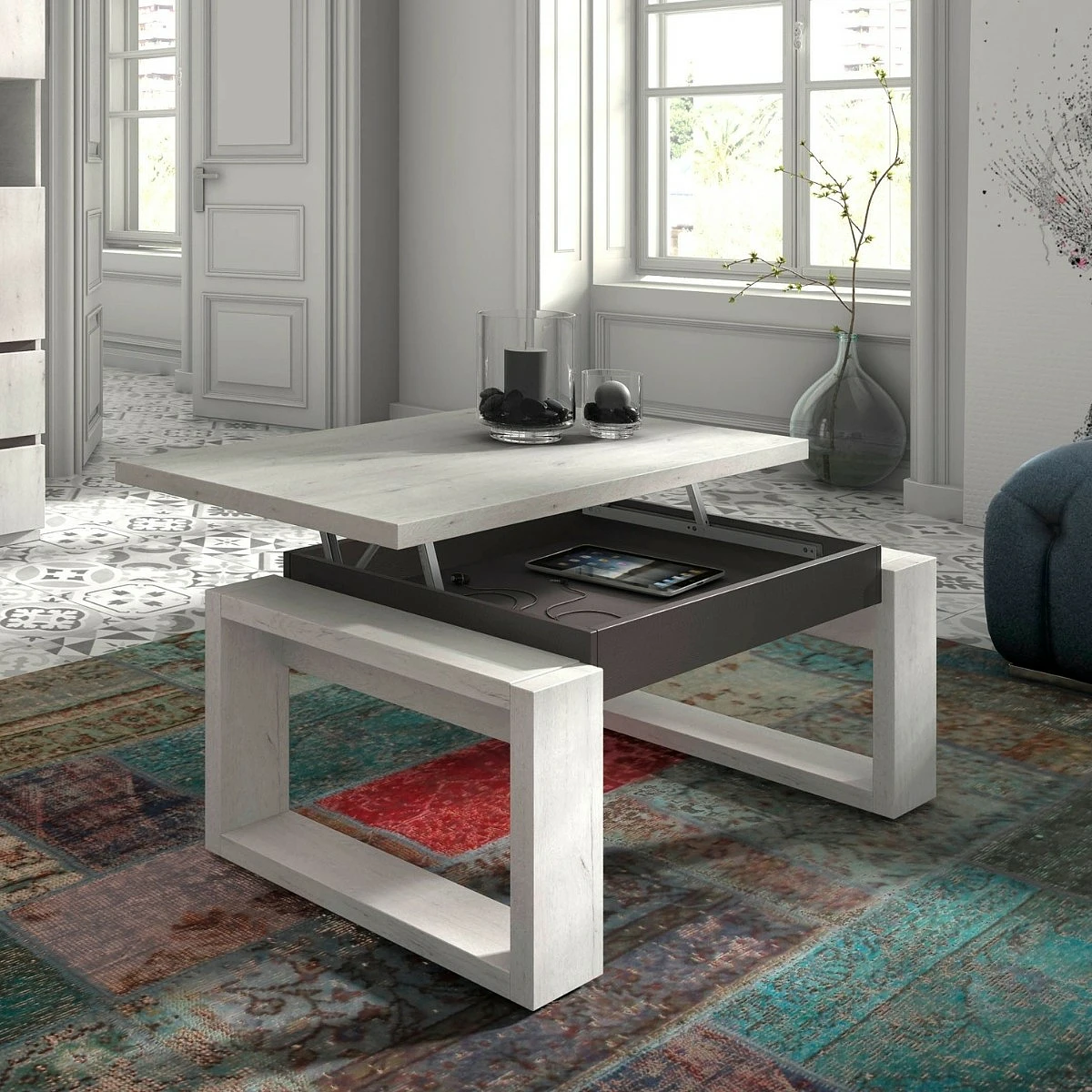 Esta mesa elevable permite crear un espacio funcional en segundos. Ideal para quienes trabajan desde casa, cenan en el sofá o necesitan un pequeño almacén cerca del área de estar. El acabado Mozart aporta luminosidad y frescura, mientras que el detalle antracita en la zona central marca un diseño elegante y contemporáneo.