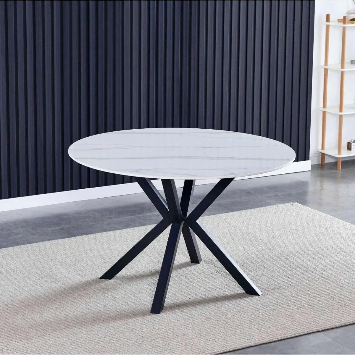 • Tapa de cerámica blanca sobre cristal con pata negra (120 cm)