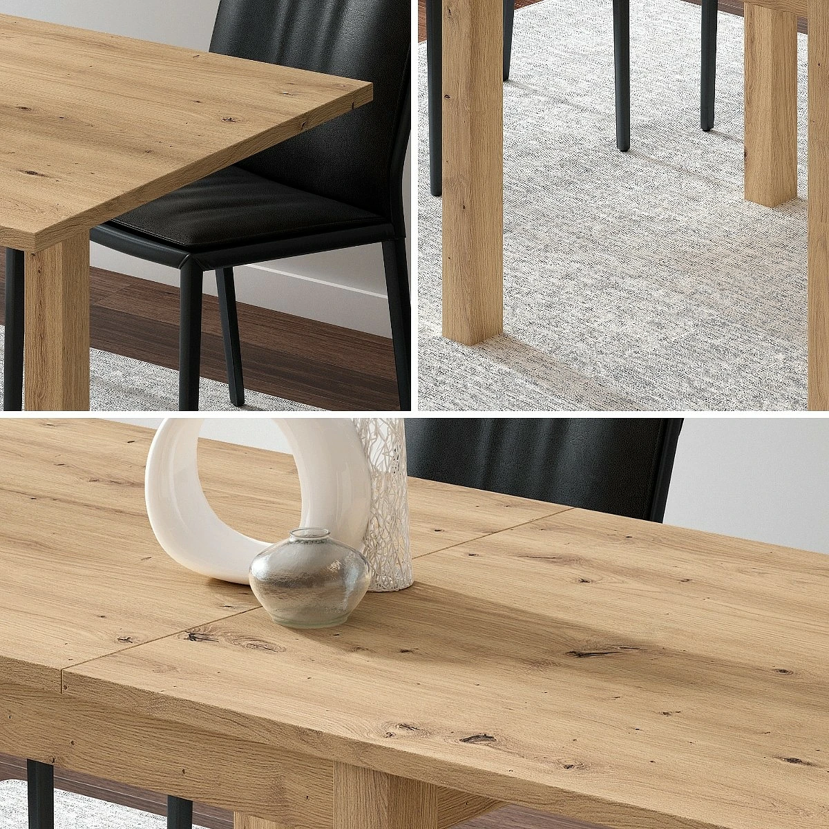 Su robusta estructura garantiza estabilidad en ambos formatos. Tanto si es para el día a día como para reuniones especiales, esta mesa se convierte en la aliada perfecta para cualquier ocasión. Su diseño inteligente permite que la transición sea rápida y cómoda.