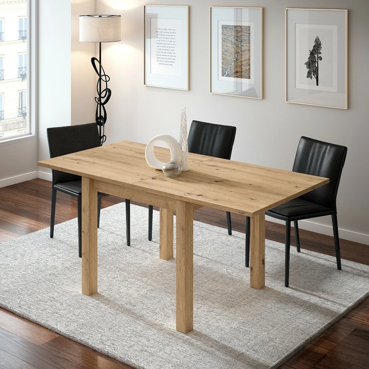 La mesa extensible tipo libro es ideal para hogares dinámicos que requieren soluciones versátiles. En su formato cerrado es perfecta para uso diario en cocinas, comedores pequeños o espacios multifuncionales. Cuando necesitas más superficie, se transforma rápidamente en una amplia mesa para recibir invitados o disfrutar de comidas en familia.