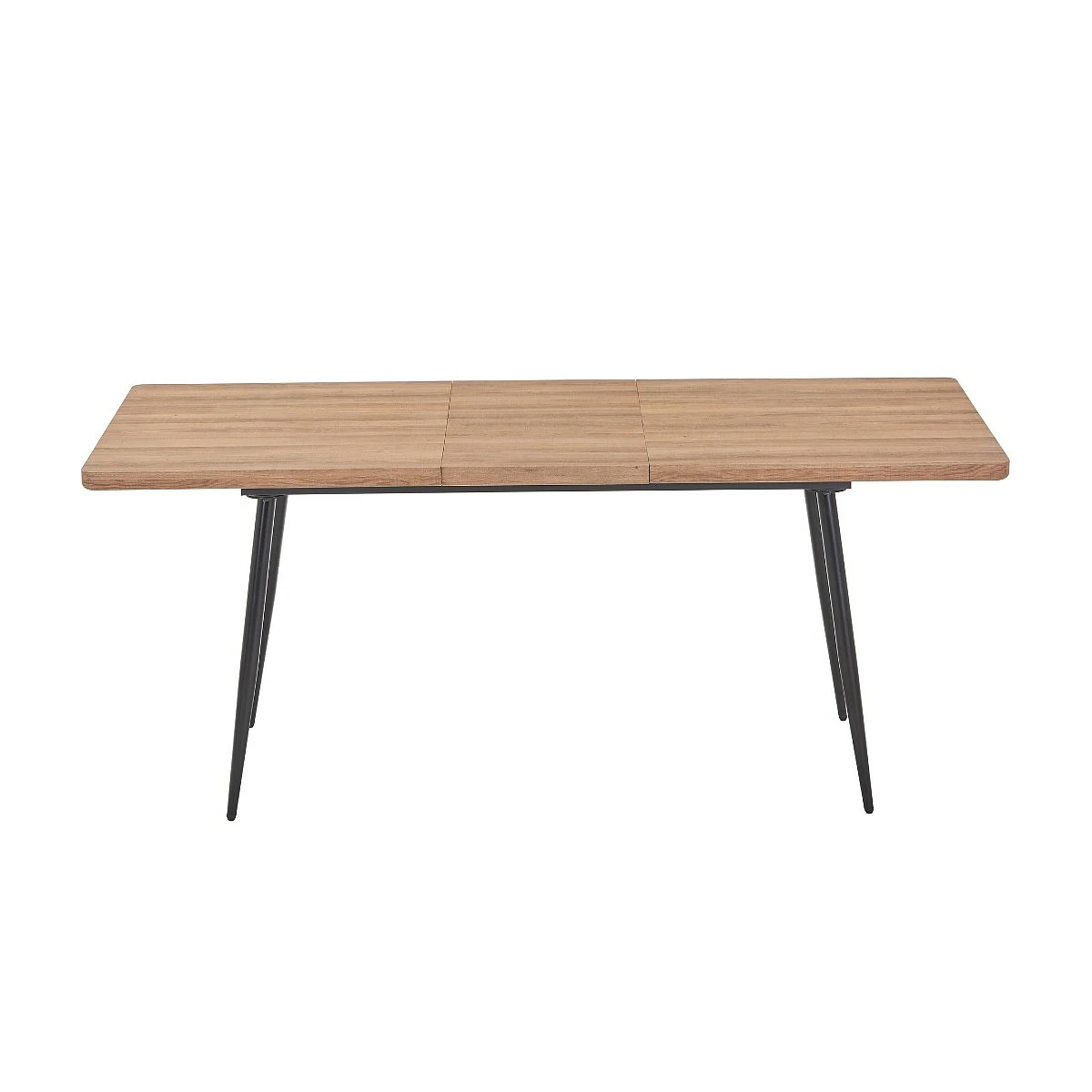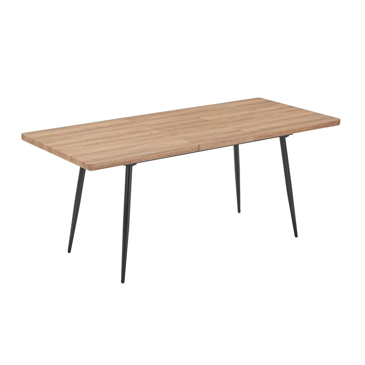 El color roble claro aporta calidez y luminosidad al ambiente, integrándose con facilidad en distintos estilos decorativos. Las patas metálicas negras, delgadas pero firmes, contrastan de forma elegante y actual. Esta mesa es una solución estética y funcional para el día a día.