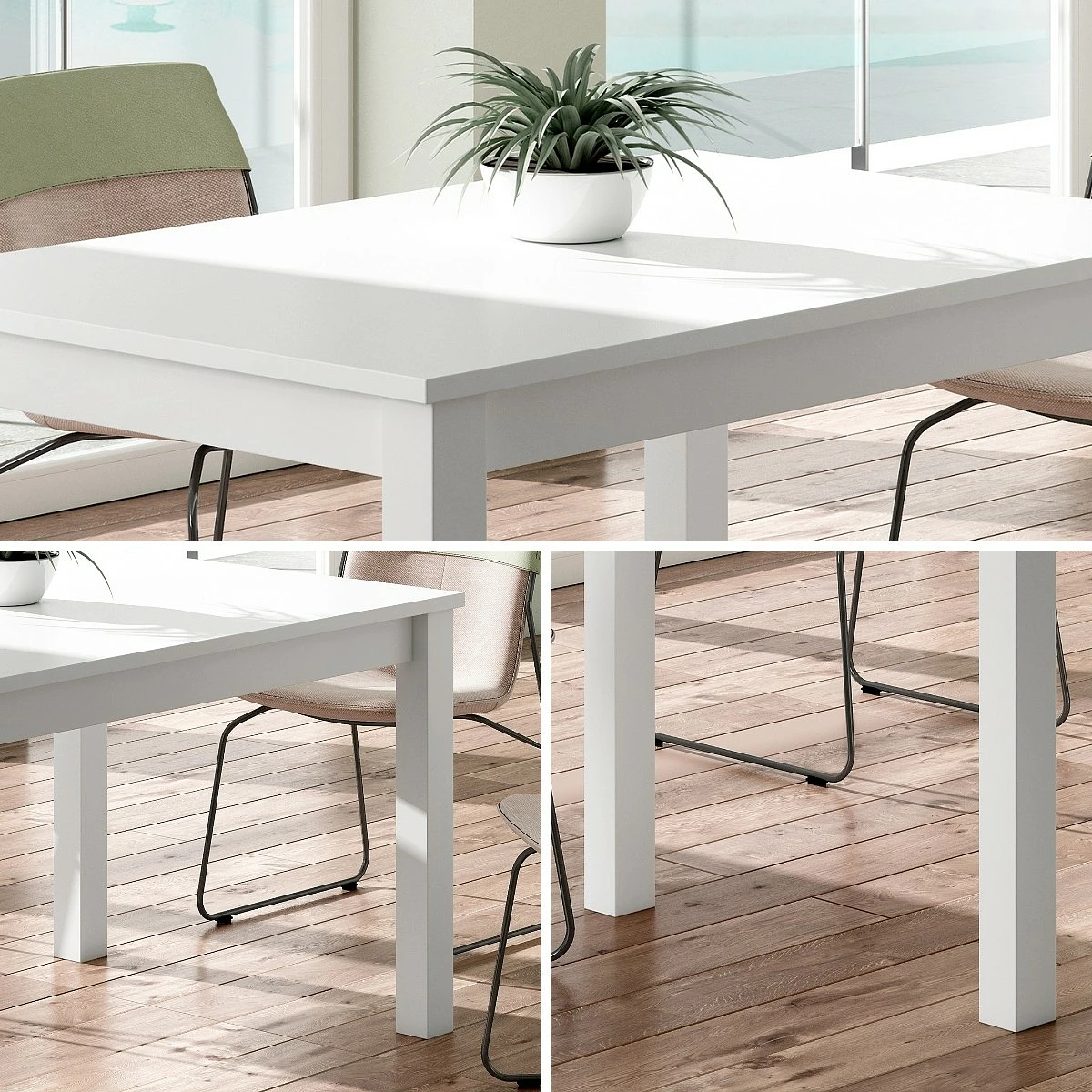 El acabado blanco es ideal para maximizar la luz y crear una sensación de amplitud. Es perfecto para comedores compactos o cocinas modernas.