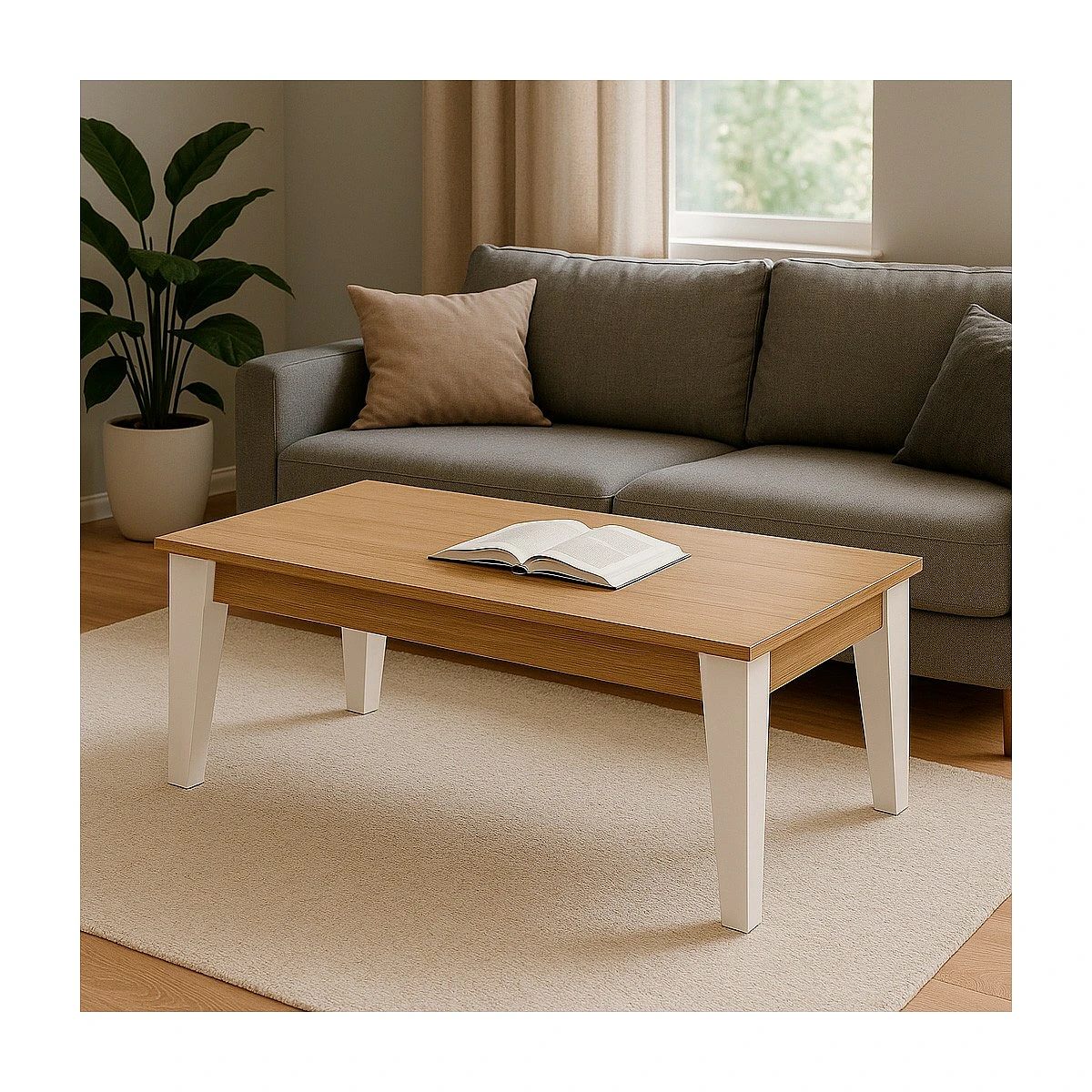 Esta mesa de centro elevable es una excelente aliada para hogares que valoran el diseño funcional. Su formato compacto encaja fácilmente frente al sofá, y su tablero elevable permite transformar el salón en una zona de trabajo o comedor informal. Los acabados combinados —como el Cambrian con grafito o el blanco con grafito— le dan un aire contemporáneo adaptable a cualquier estilo.