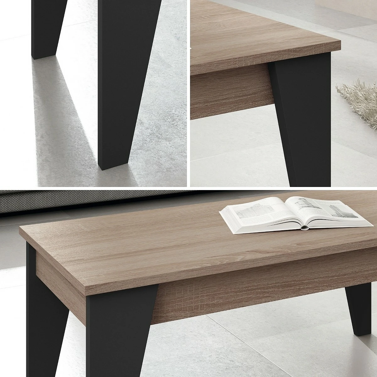 Esta mesa de centro elevable es una excelente aliada para hogares que valoran el diseño funcional. Su formato compacto encaja fácilmente frente al sofá, y su tablero elevable permite transformar el salón en una zona de trabajo o comedor informal. Los acabados combinados —como el Cambrian con grafito o el blanco con grafito— le dan un aire contemporáneo adaptable a cualquier estilo.