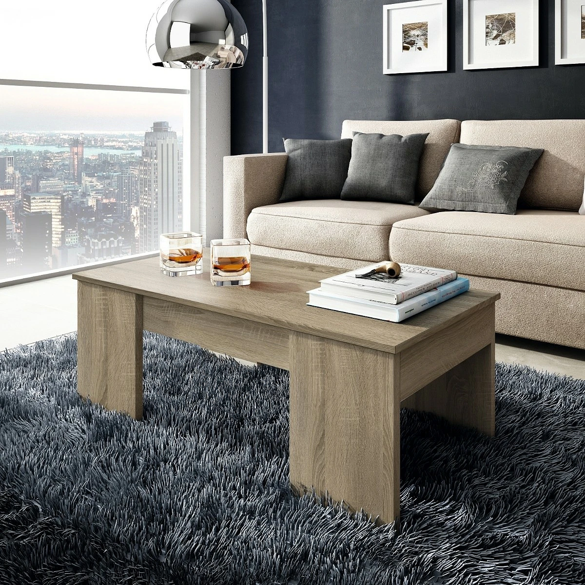 Esta mesa ha sido diseñada pensando en la vida diaria: cómoda, práctica y siempre lista para adaptarse a tus necesidades. Su tapa se eleva con un suave mecanismo, creando una superficie ideal para comer, teletrabajar o estudiar sin necesidad de moverte del sofá. Además, bajo la tapa encontrarás un compartimento perfecto para almacenar objetos pequeños y mantener el salón ordenado.