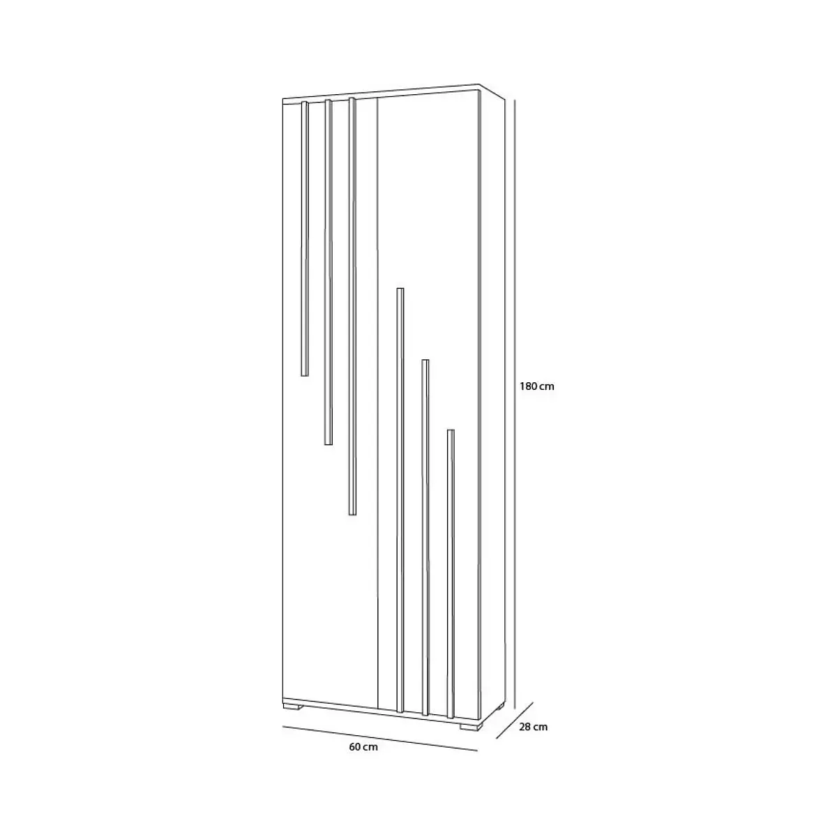 Este mueble auxiliar de 60x180x28cm ha sido diseñado para ofrecer gran capacidad de almacenamiento en espacios reducidos. Su formato alto y compacto es ideal para pasillos estrechos o zonas desaprovechadas, permitiendo mantener organizados libros, documentos, vajilla o artículos personales.
