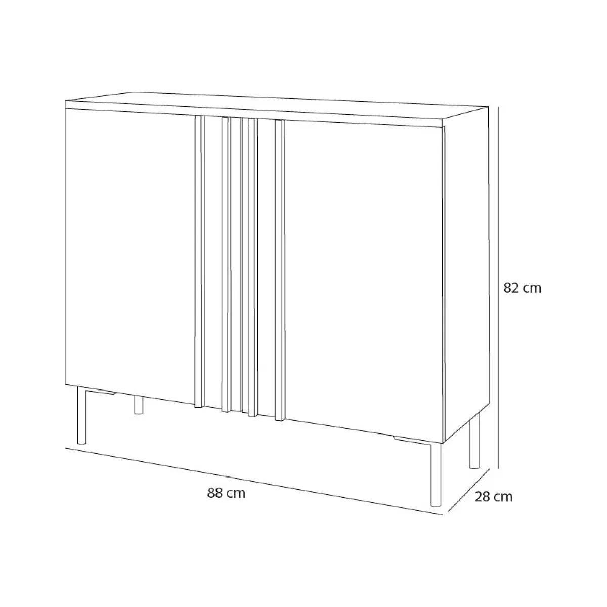Con sus 28 cm de fondo, esta consola es perfecta para entradas estrechas, pasillos o zonas de paso. A pesar de su formato compacto, ofrece una gran capacidad gracias a su interior dividido en varios compartimentos que permiten guardar objetos cotidianos como llaves, bolsos, papelería o calzado ligero.
