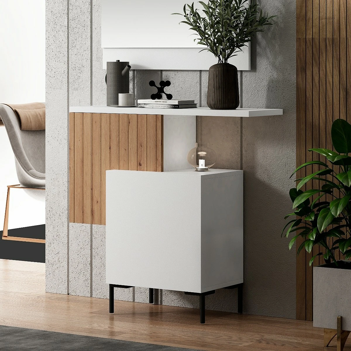 Ideal para espacios modernos o nórdicos, este mueble es perfecto para crear un recibidor elegante o completar una pared en el salón con un toque de sofisticación.