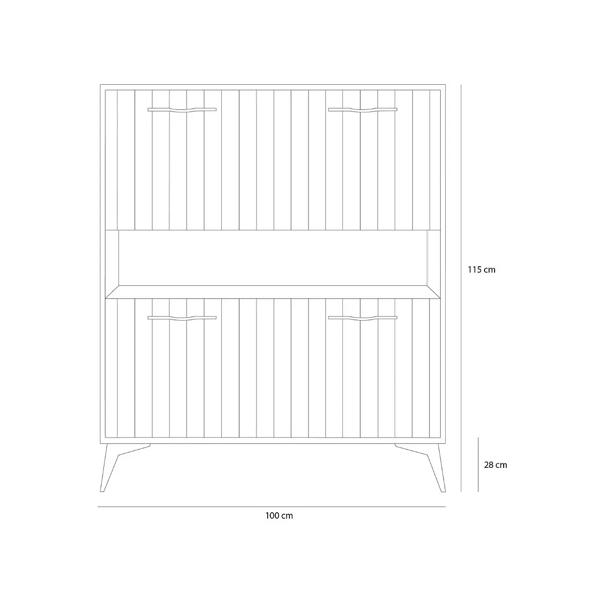 Su tamaño de 100x115x28 cm lo convierte en un mueble alto y estrecho, ideal para optimizar espacios sin recargar el ambiente.