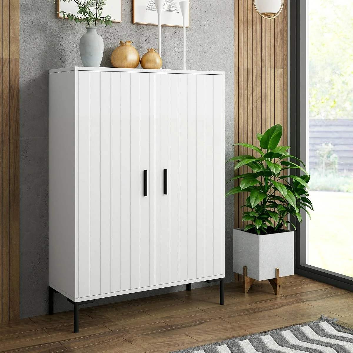 El acabado blanco mate de este zapatero de diseño moderno combina sin esfuerzo con ambientes minimalistas, nórdicos o contemporáneos. Es perfecto para: