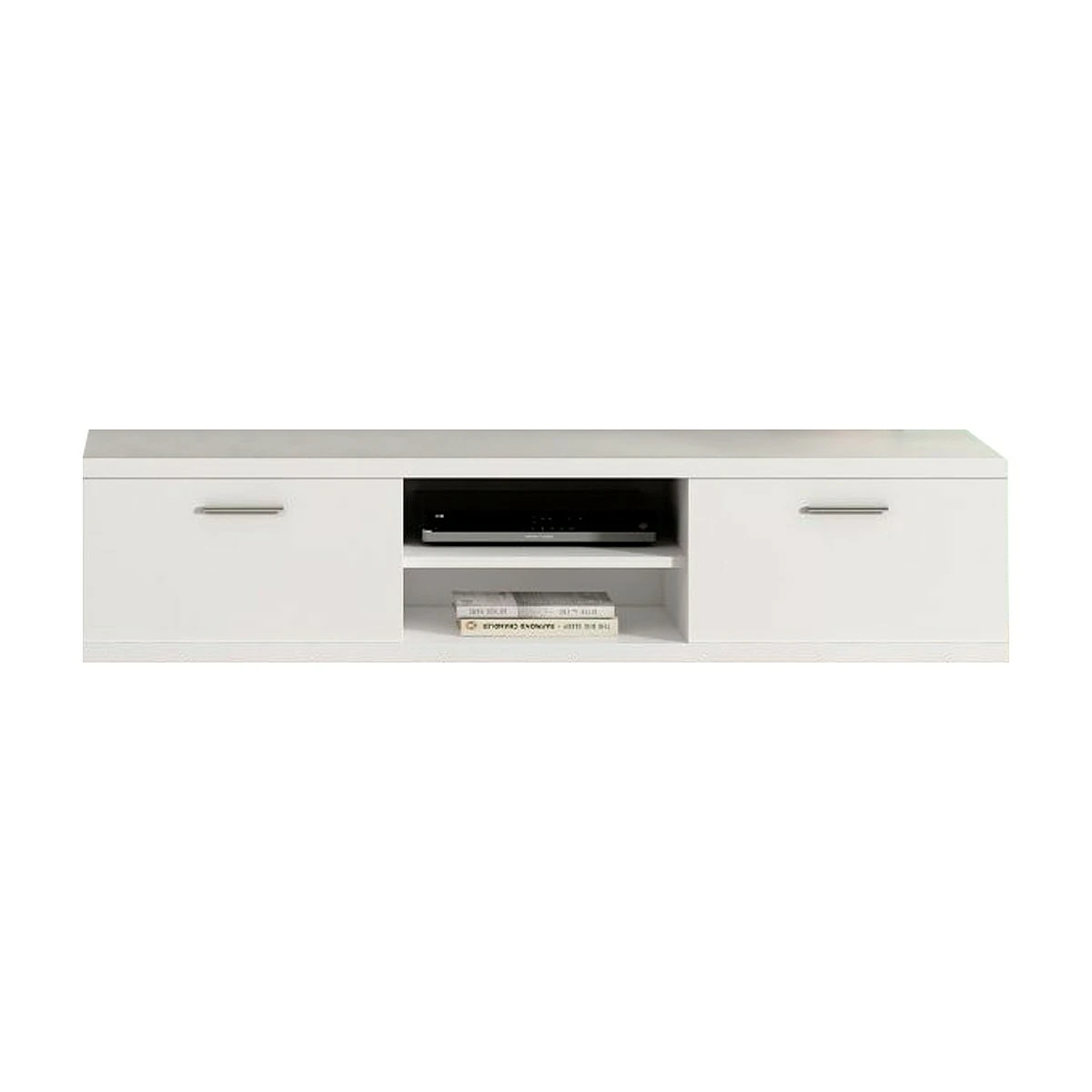 Este mueble de televisión no solo es visualmente atractivo, sino también extremadamente funcional. Con una combinación de espacios abiertos y cerrados, proporciona diversas opciones de almacenamiento. Esto facilita la organización de dispositivos electrónicos, DVDs, libros y otros objetos, manteniendo el área del televisor ordenada y limpia.