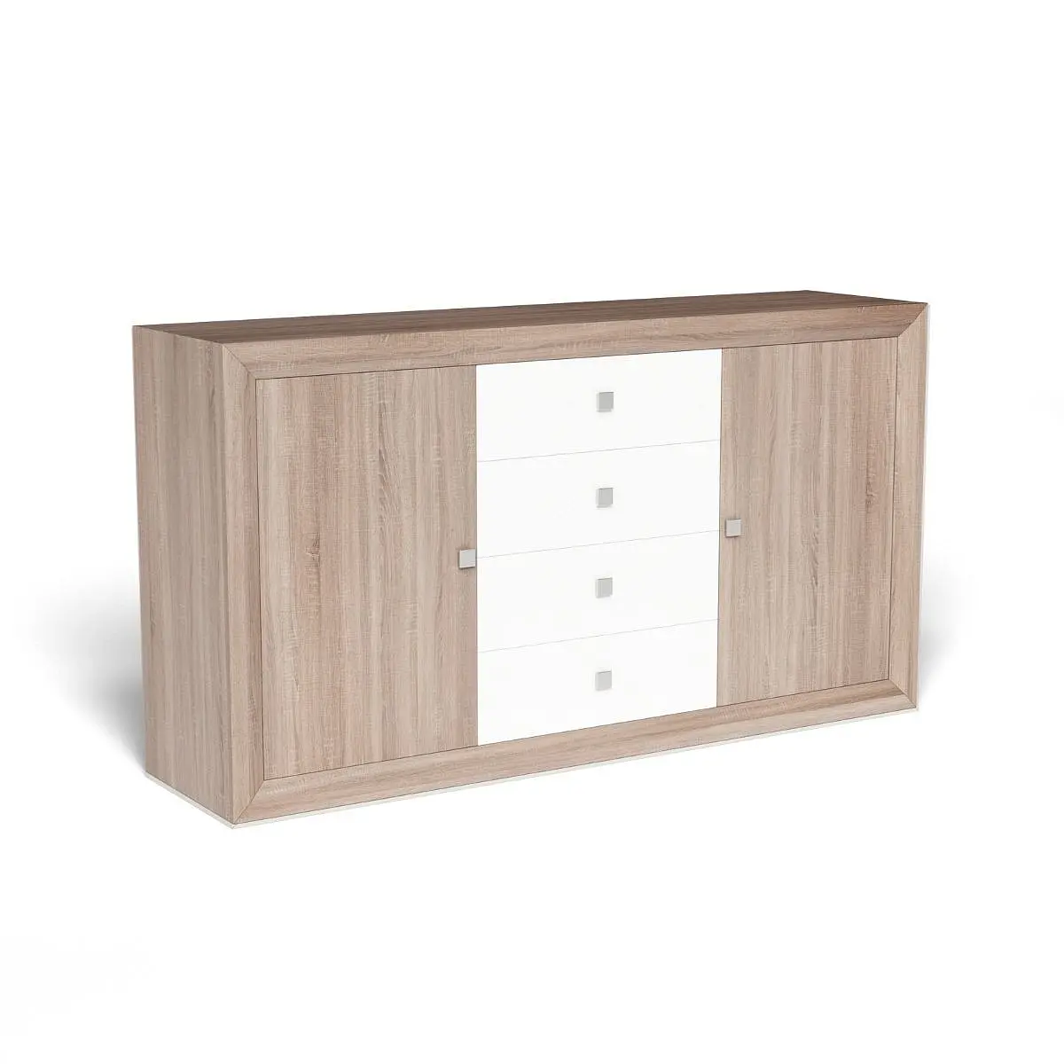 Sus dimensiones generosas permiten un amplio espacio de almacenamiento, con dos puertas laterales y cuatro cajones centrales. Esto facilita la organización de diversos artículos, manteniendo tu hogar ordenado y estilizado. La disposición de los compartimientos está pensada para maximizar el espacio disponible, permitiéndote almacenar todo tipo de objetos de manera eficiente.
