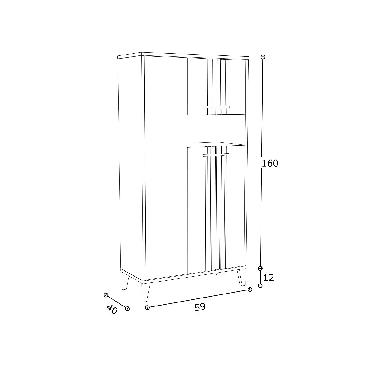 Gracias a su formato alto y estrecho, el bodeguero Dakota permite aprovechar al máximo la altura de la estancia sin ocupar demasiado espacio en el suelo. Es ideal para salones, cocinas auxiliares, comedores o incluso pasillos amplios. Su diseño frontal con listones decorativos verticales y tiradores negros realza el estilo moderno del mueble.