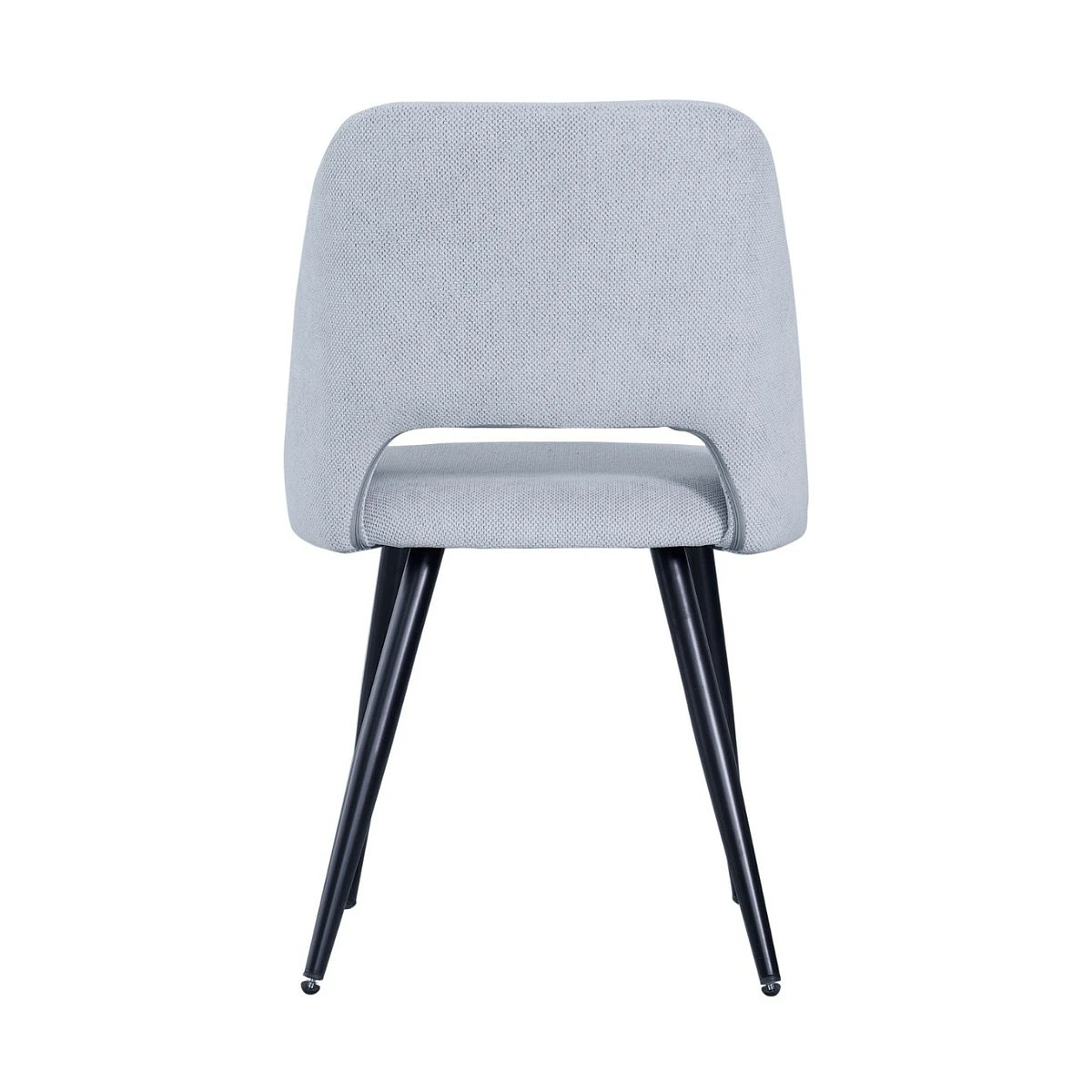 Aunque su diseño es visualmente delicado, la silla Flora cuenta con una estructura metálica firme que garantiza una excelente estabilidad. Las patas cónicas en negro mate contrastan con el tapizado, creando un efecto visual equilibrado y muy contemporáneo.