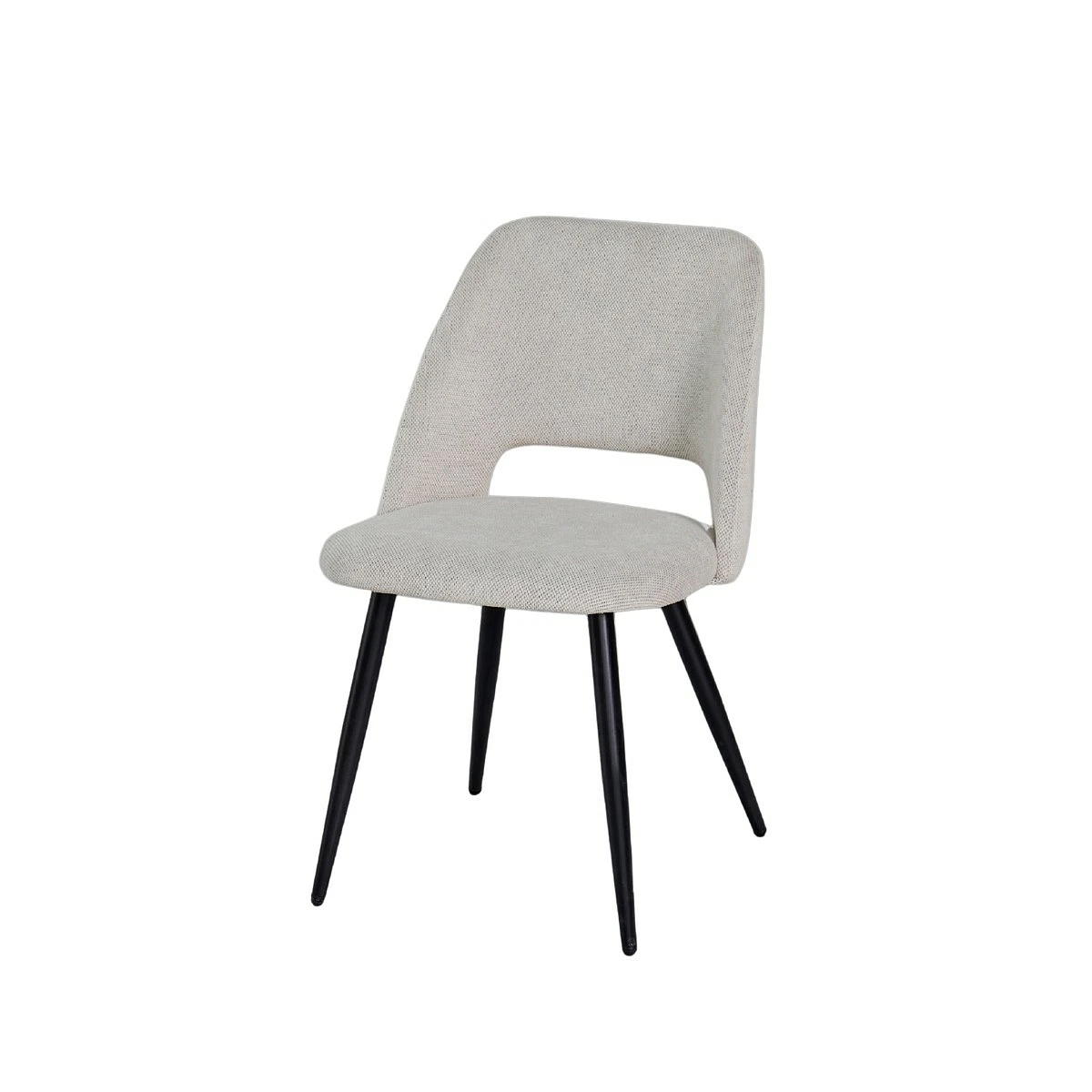 Es perfecta para crear un rincón de comedor moderno o acompañar mesas redondas, gracias a su forma amigable y proporciones equilibradas. Su diseño aporta una sensación de calidez visual que se complementa con la suavidad del tejido.