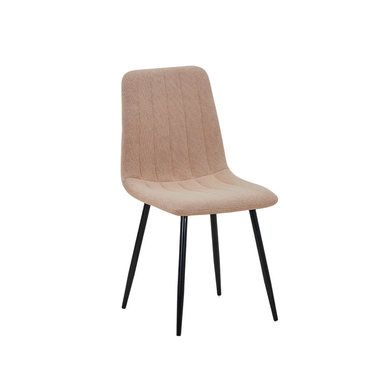 Las patas metálicas ofrecen estabilidad y resistencia, con un acabado negro que añade contraste y carácter. Esta mezcla de materiales no solo es estéticamente atractiva, sino también funcional: el asiento es fácil de limpiar y las patas mantienen la firmeza incluso con un uso intensivo.